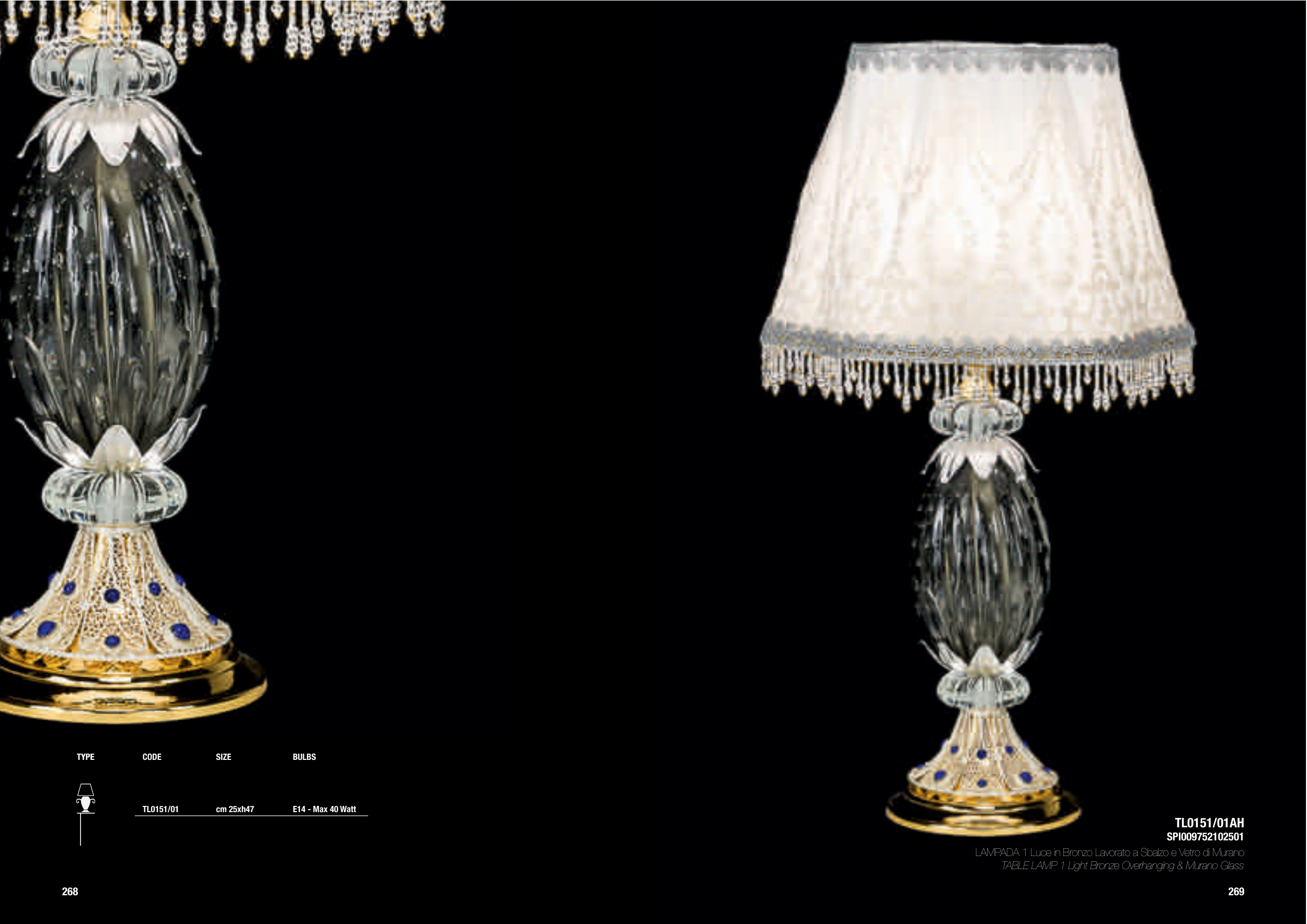 TABLE LAMP 1 Light Bronze Overhanging & Murano Glass