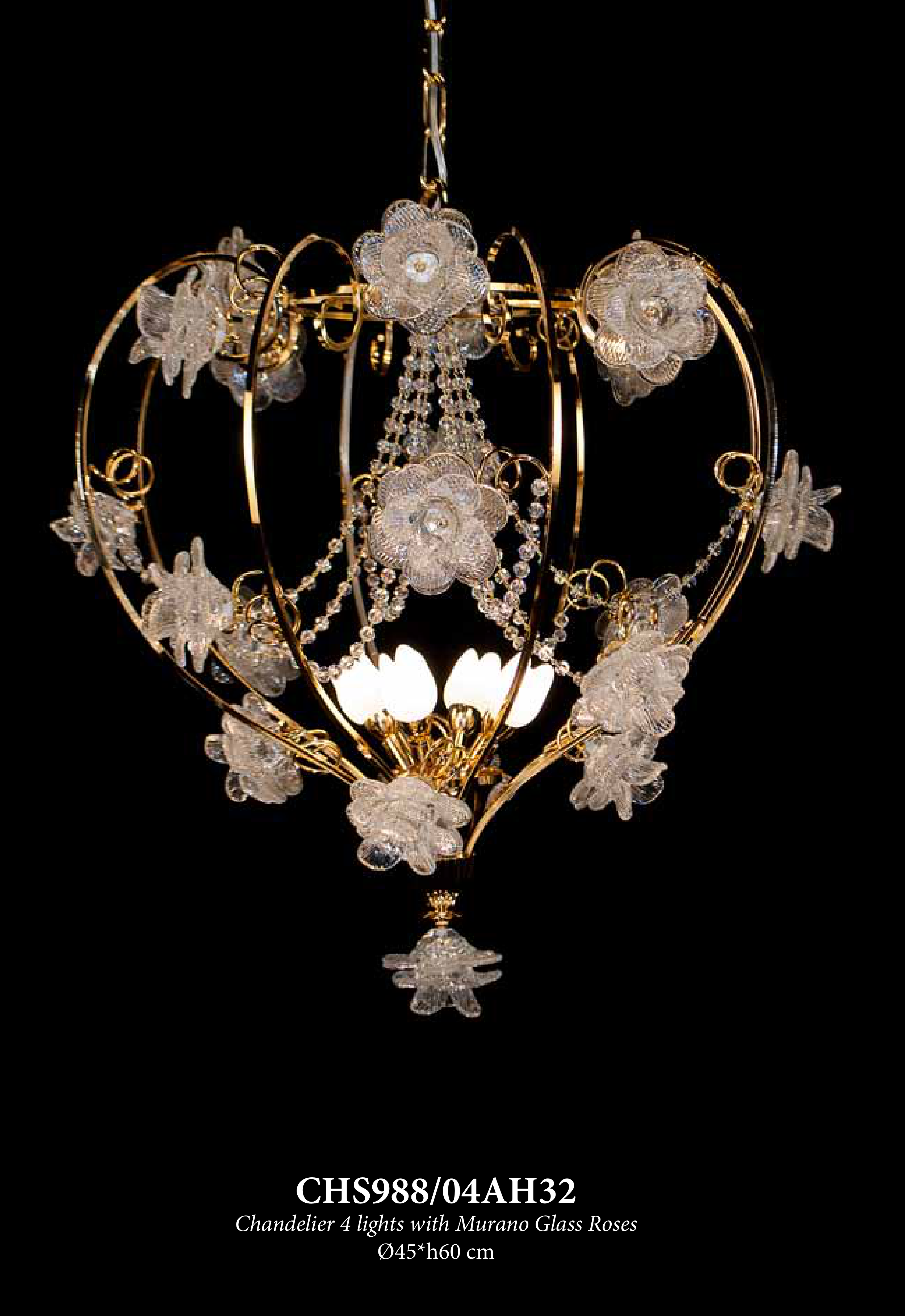 Chandelier 4 lights with Murano Glass Roses