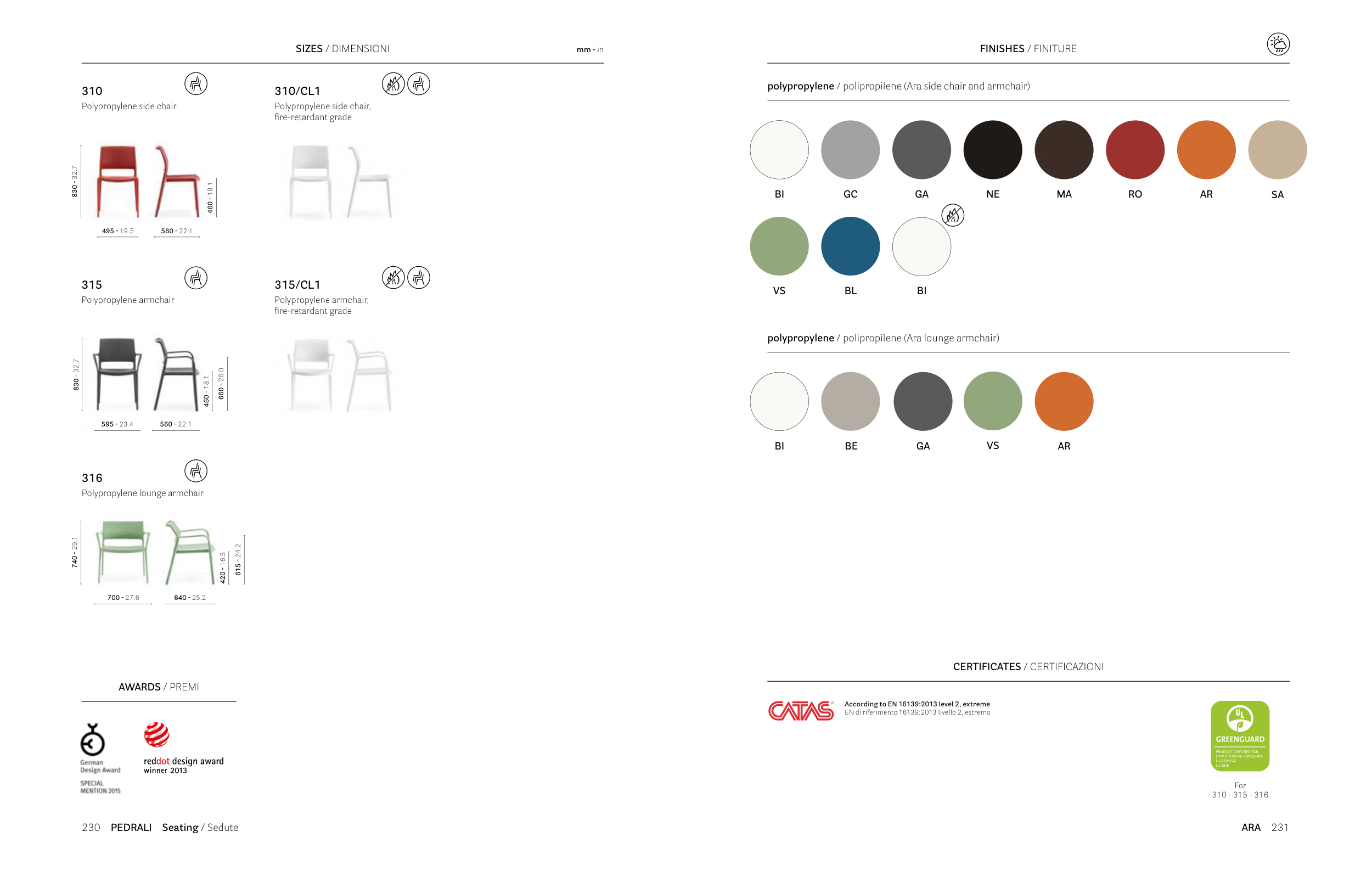 polypropylene / polipropilene (Ara side chair and armchair)