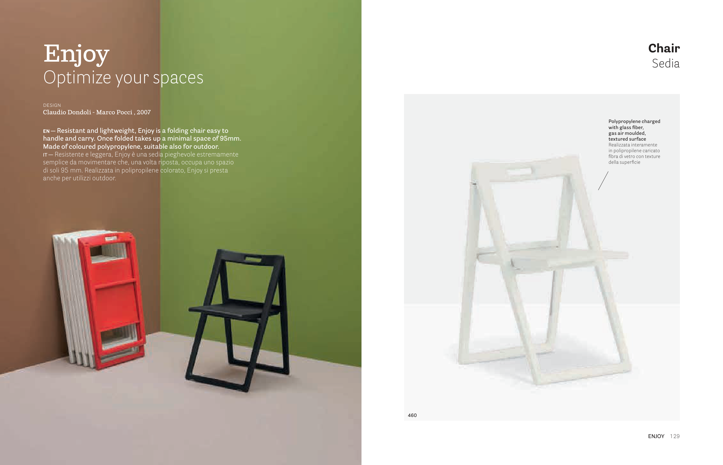 EN — Resistant and lightweight, Enjoy is a folding chair easy to