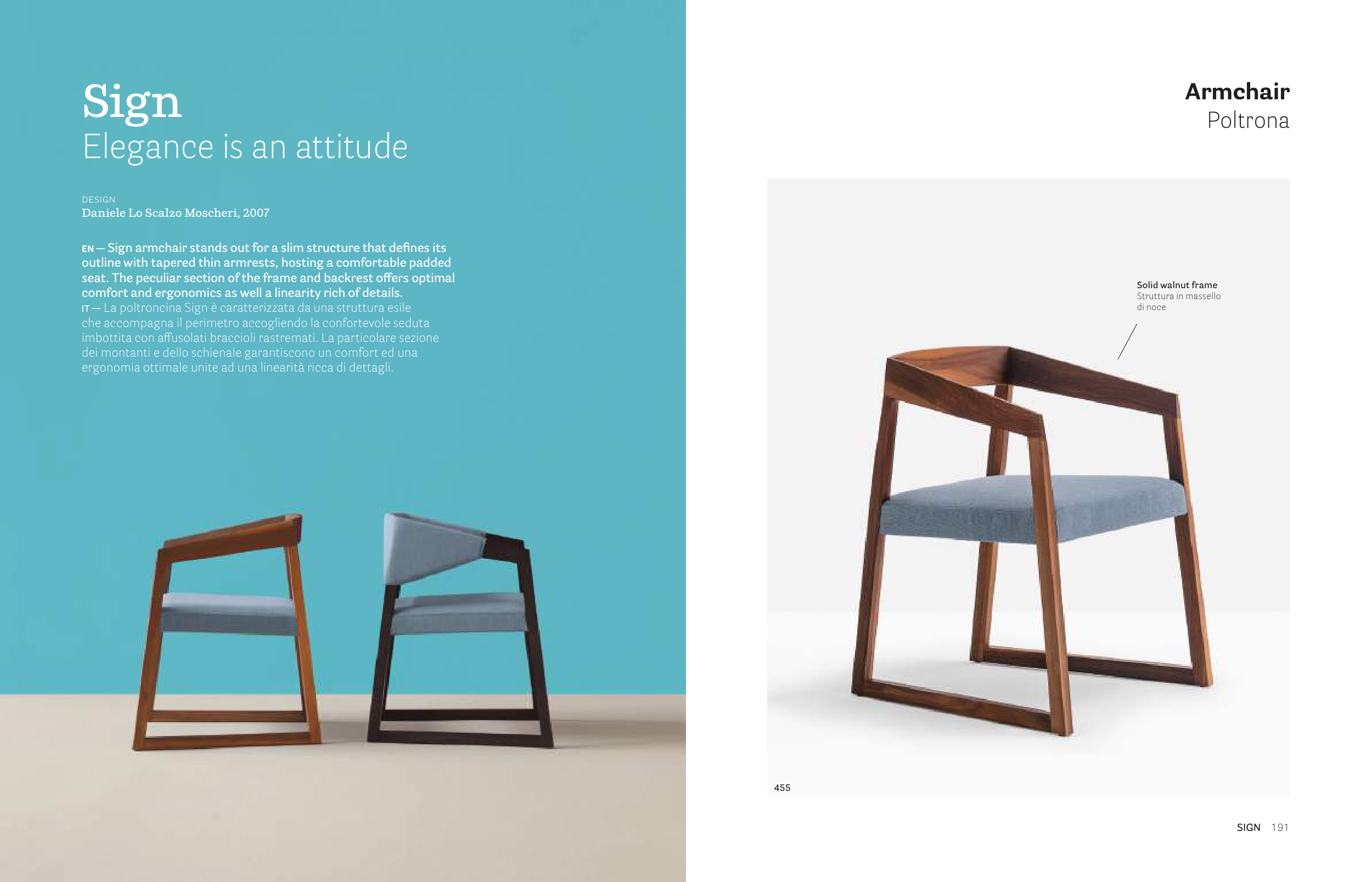 EN — Sign armchair stands out for a slim structure that defines its