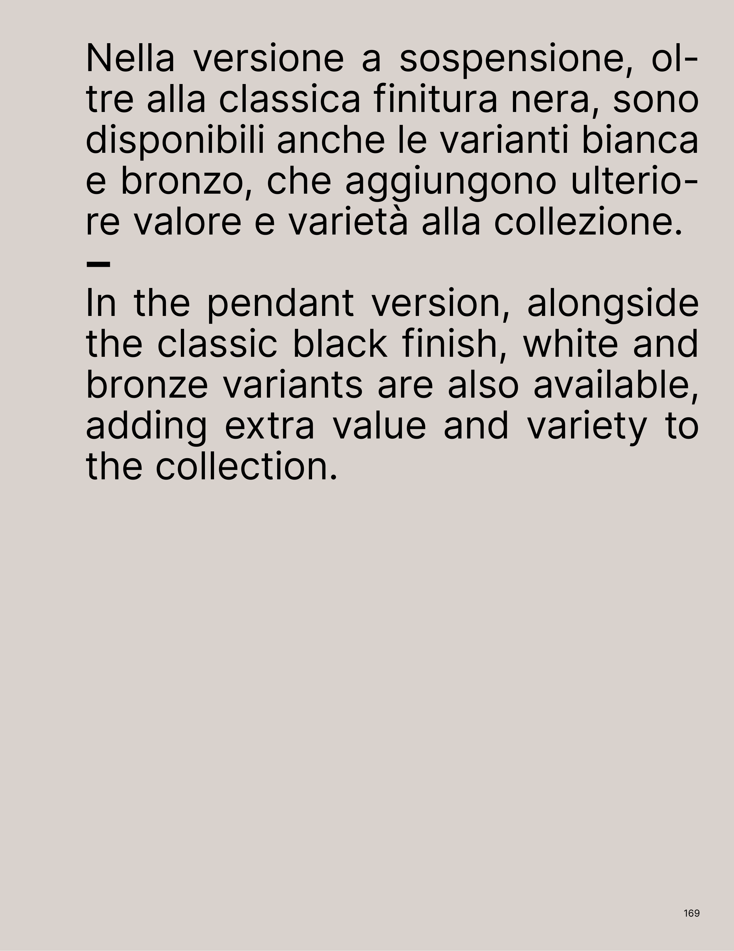 In the pendant version, alongside