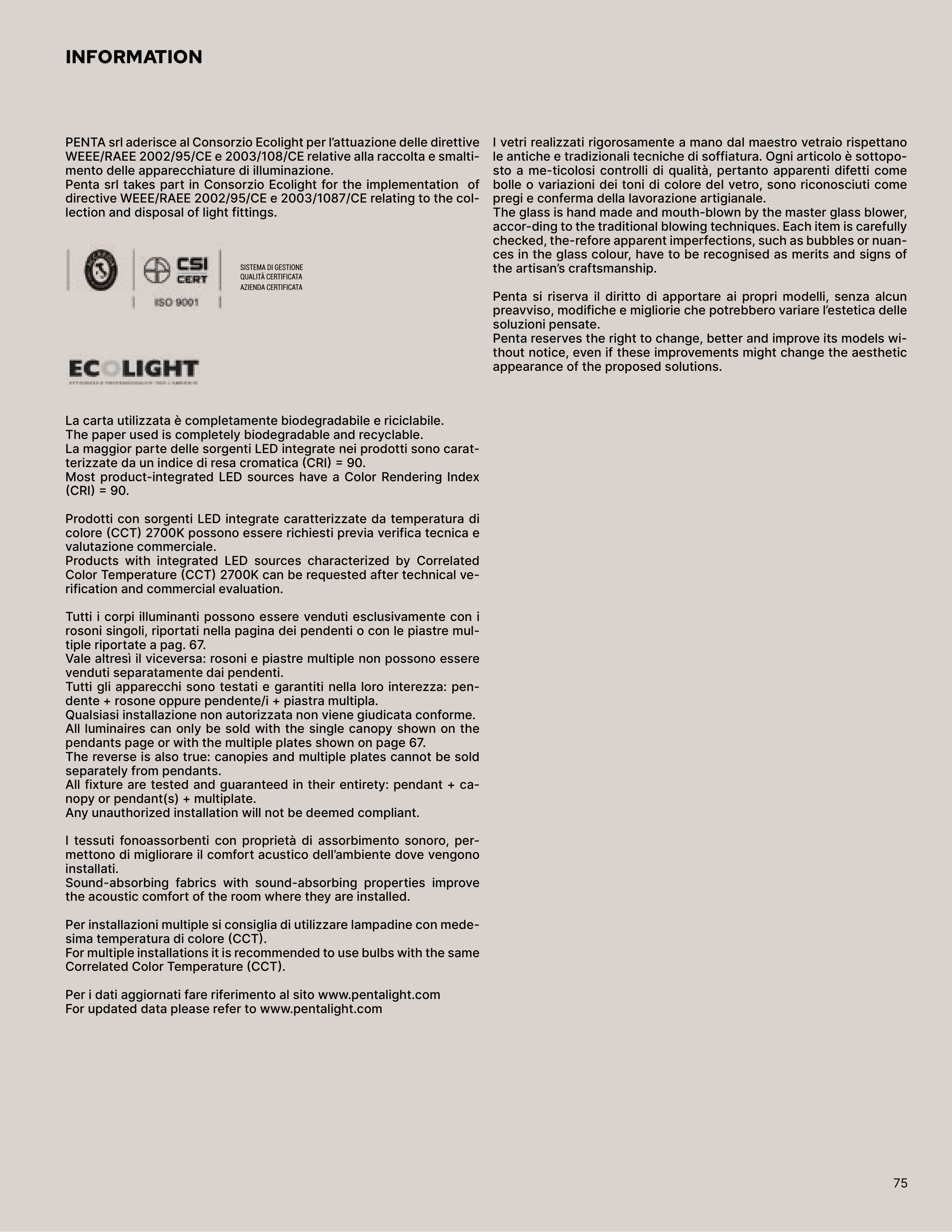 Per i dati aggiornati fare riferimento al sito www.pentalight.com