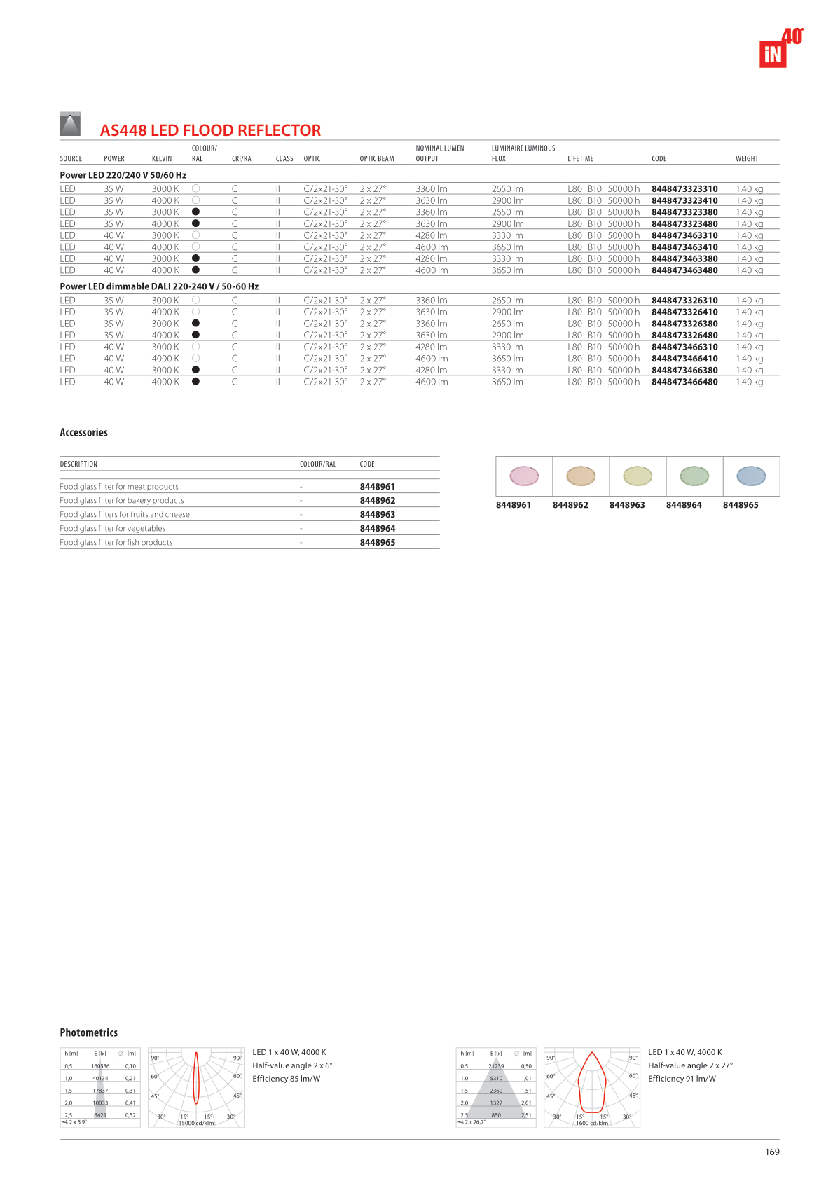 LED 1 x 40 W, 4000 K