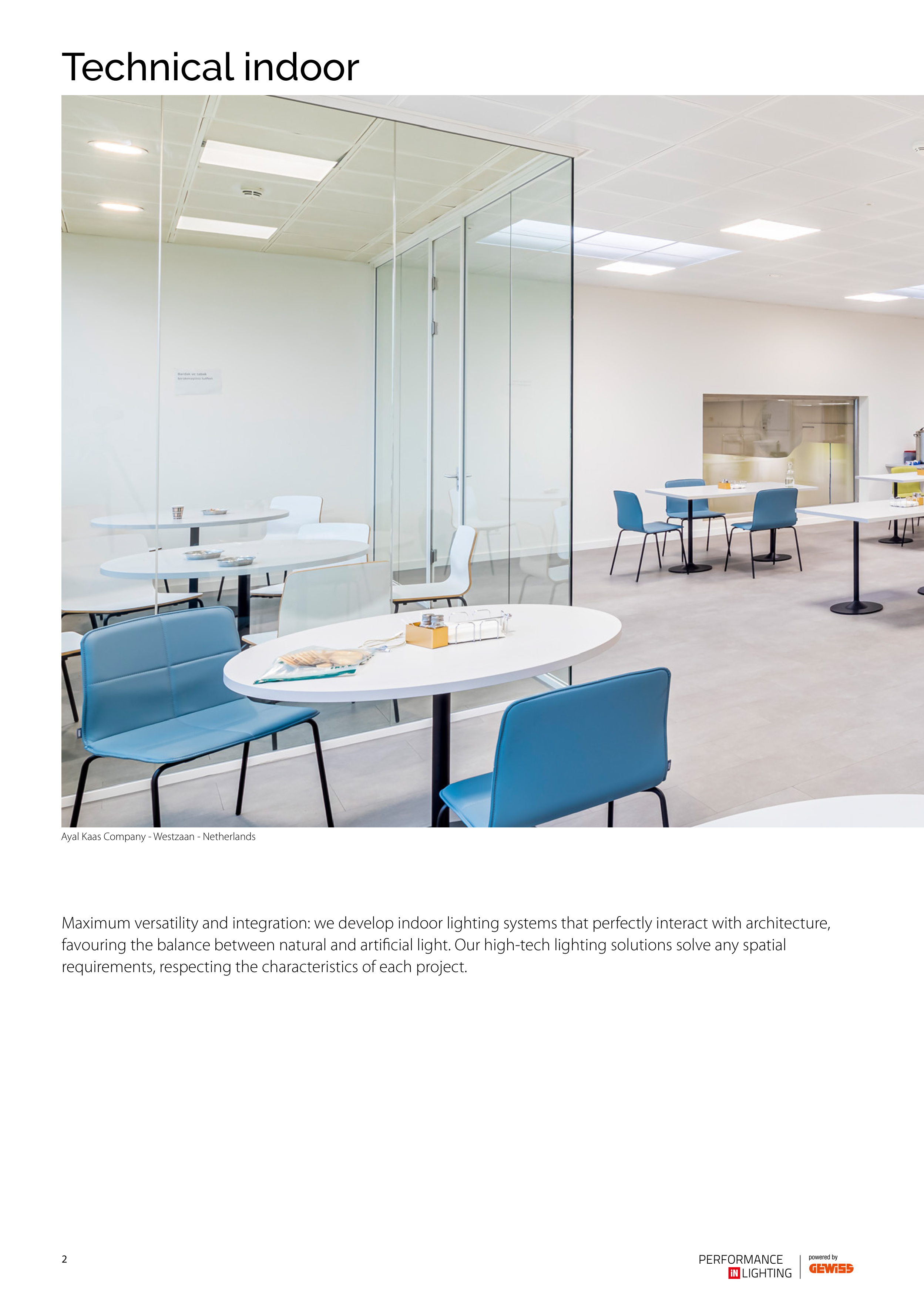 favouring the balance between natural and artificial light. Our high-tech lighting solutions solve any spatial