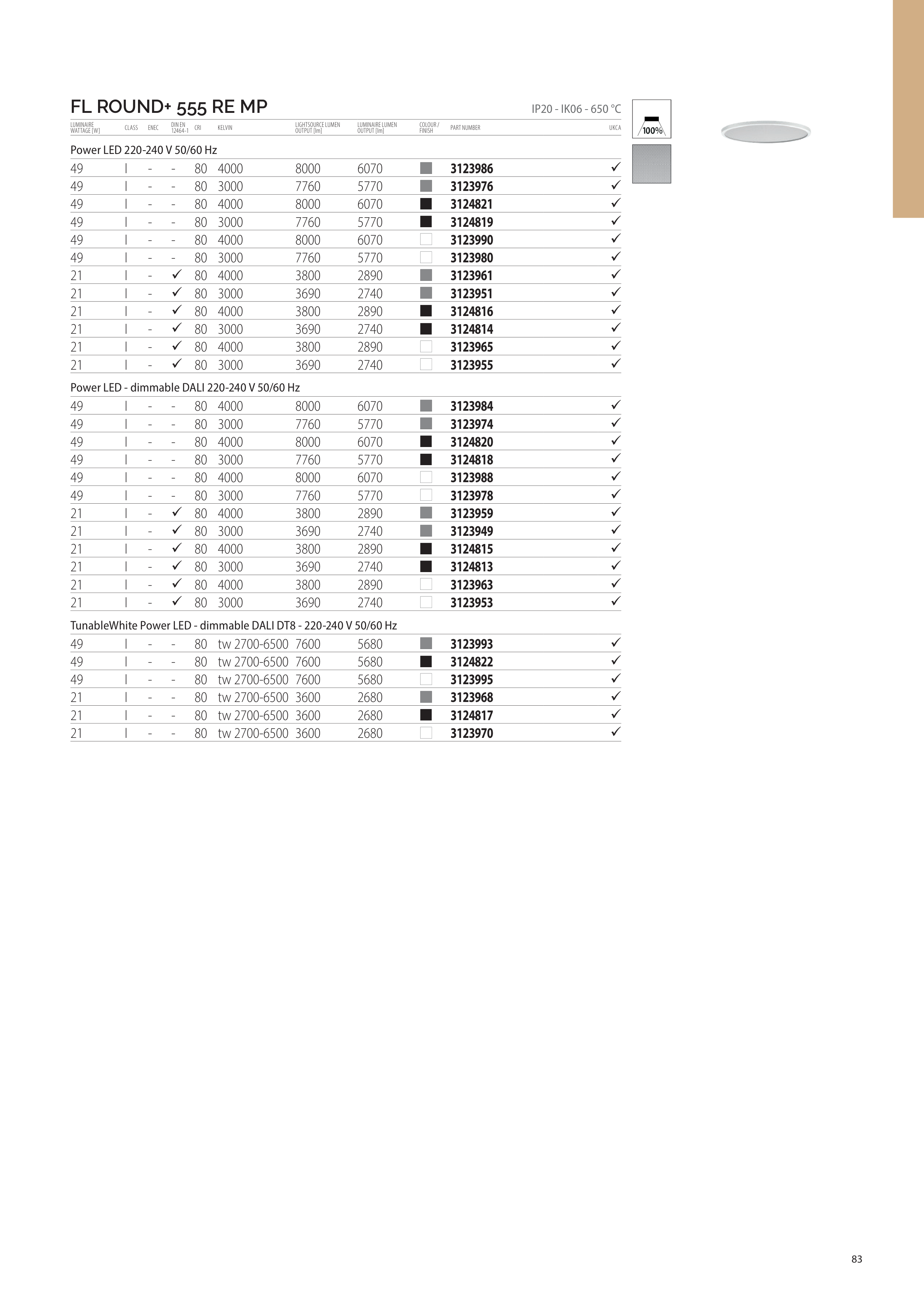 IP20 - IK06 - 650 °C