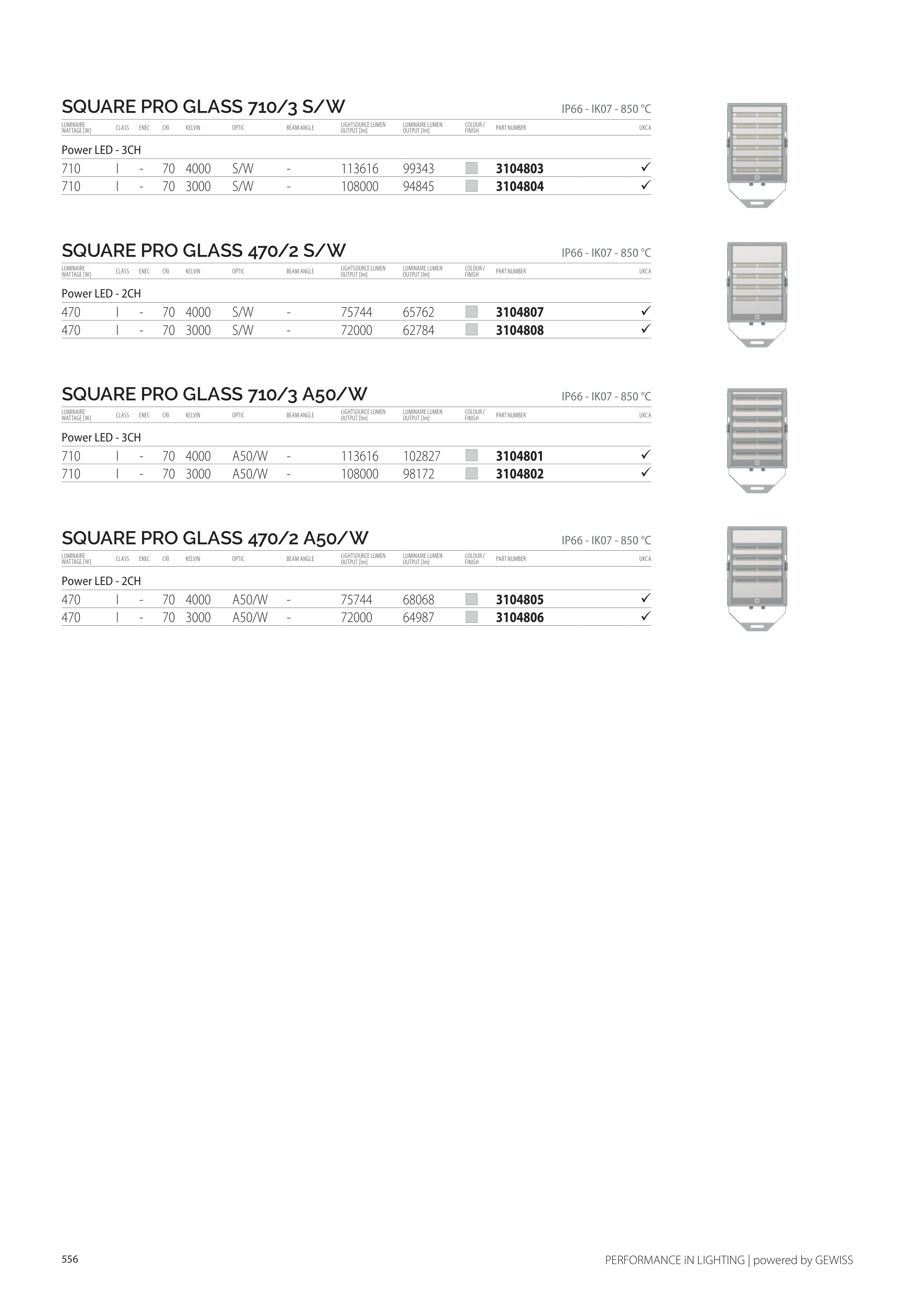SQUARE PRO GLASS 710/3 A50/W