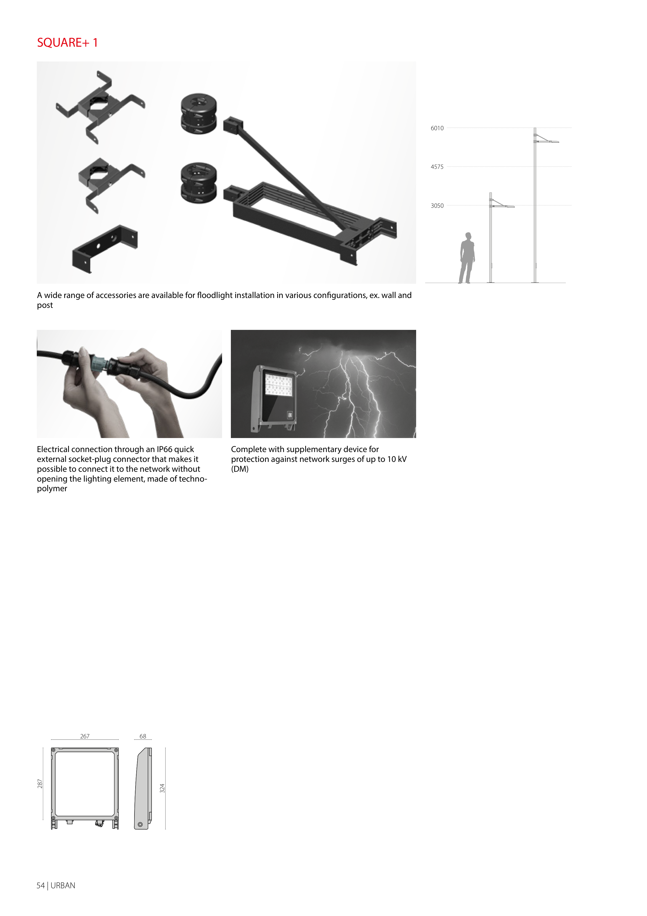 A wide range of accessories are available for floodlight installation in various configurations, ex. wall and