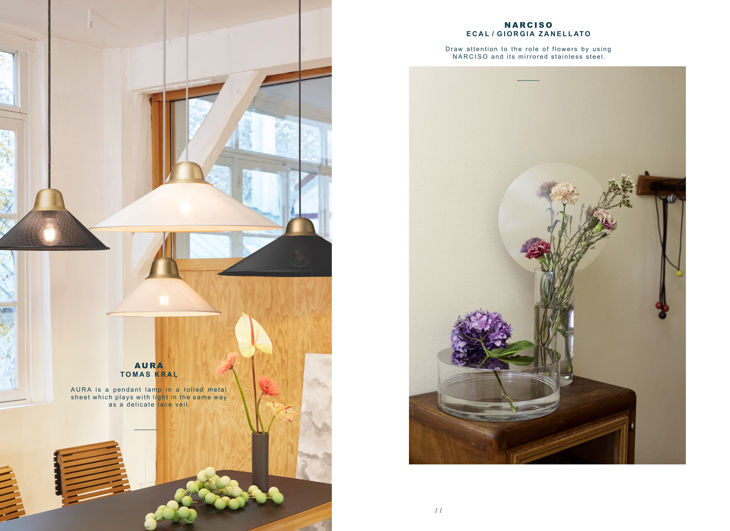 A U R A is a pendant lamp in a rolled metal