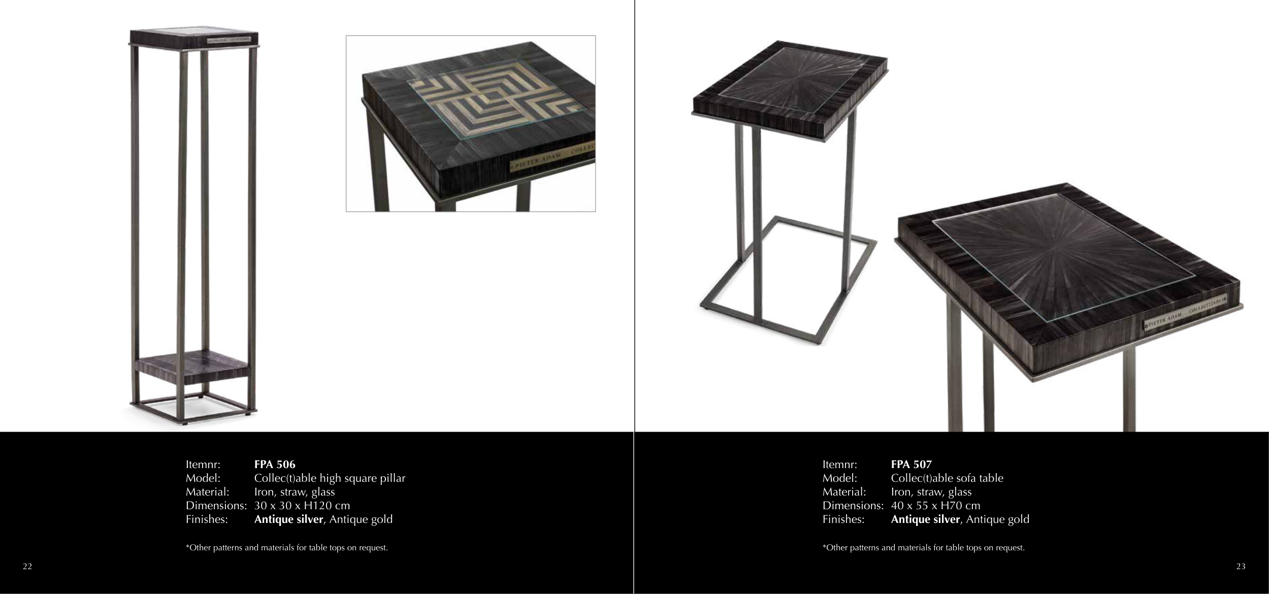 *Other patterns and materials for table tops on request.
