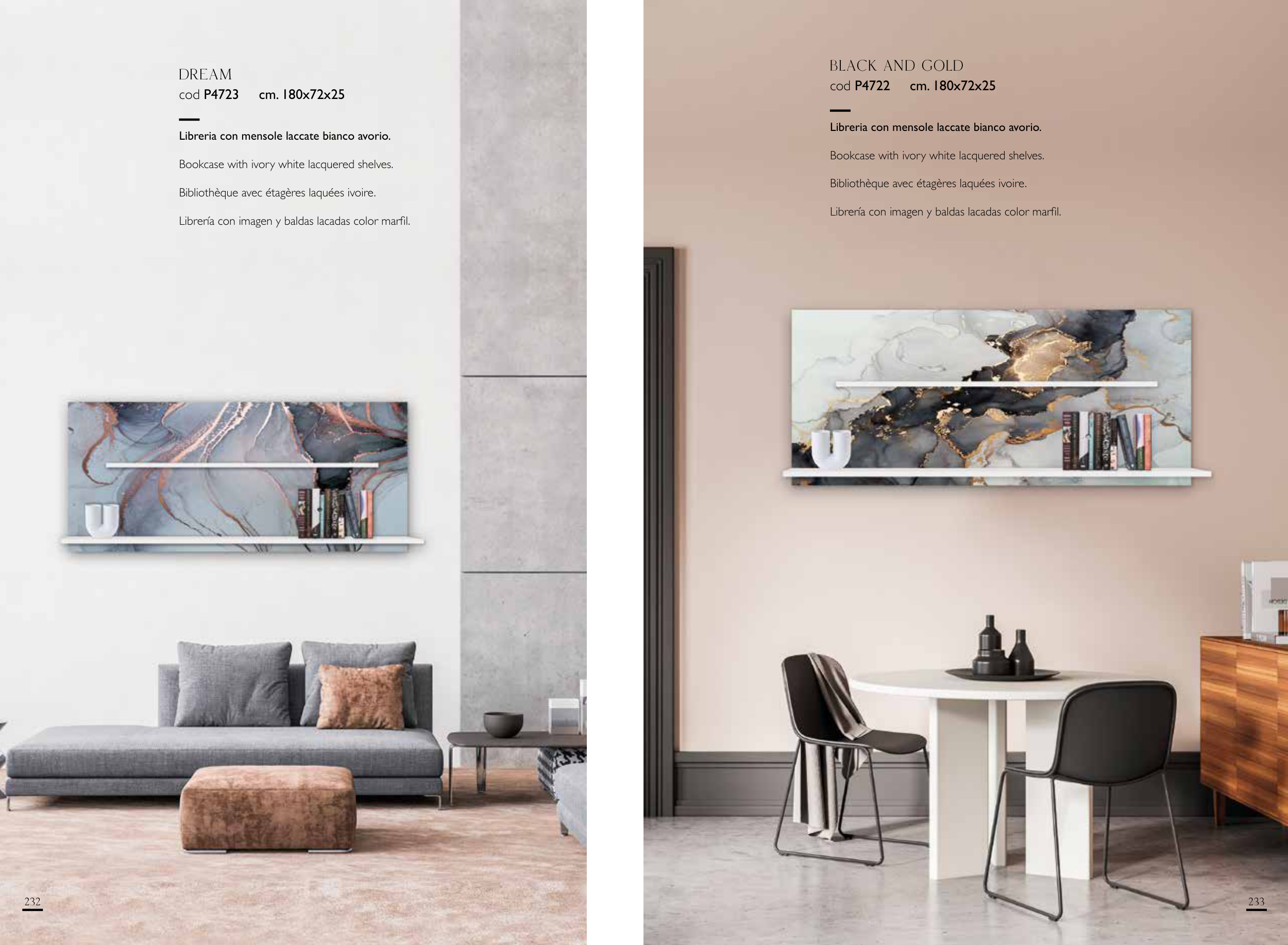 Librería con imagen y baldas lacadas color marfil.