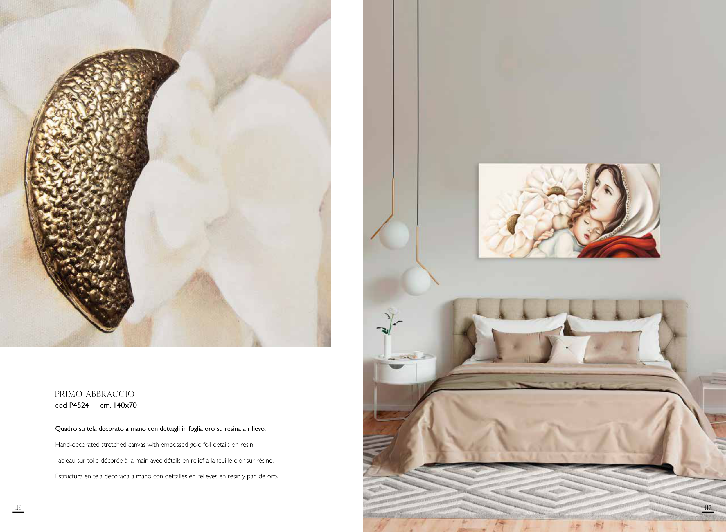 Tableau sur toile décorée à la main avec détails en relief à la feuille d’or sur résine.