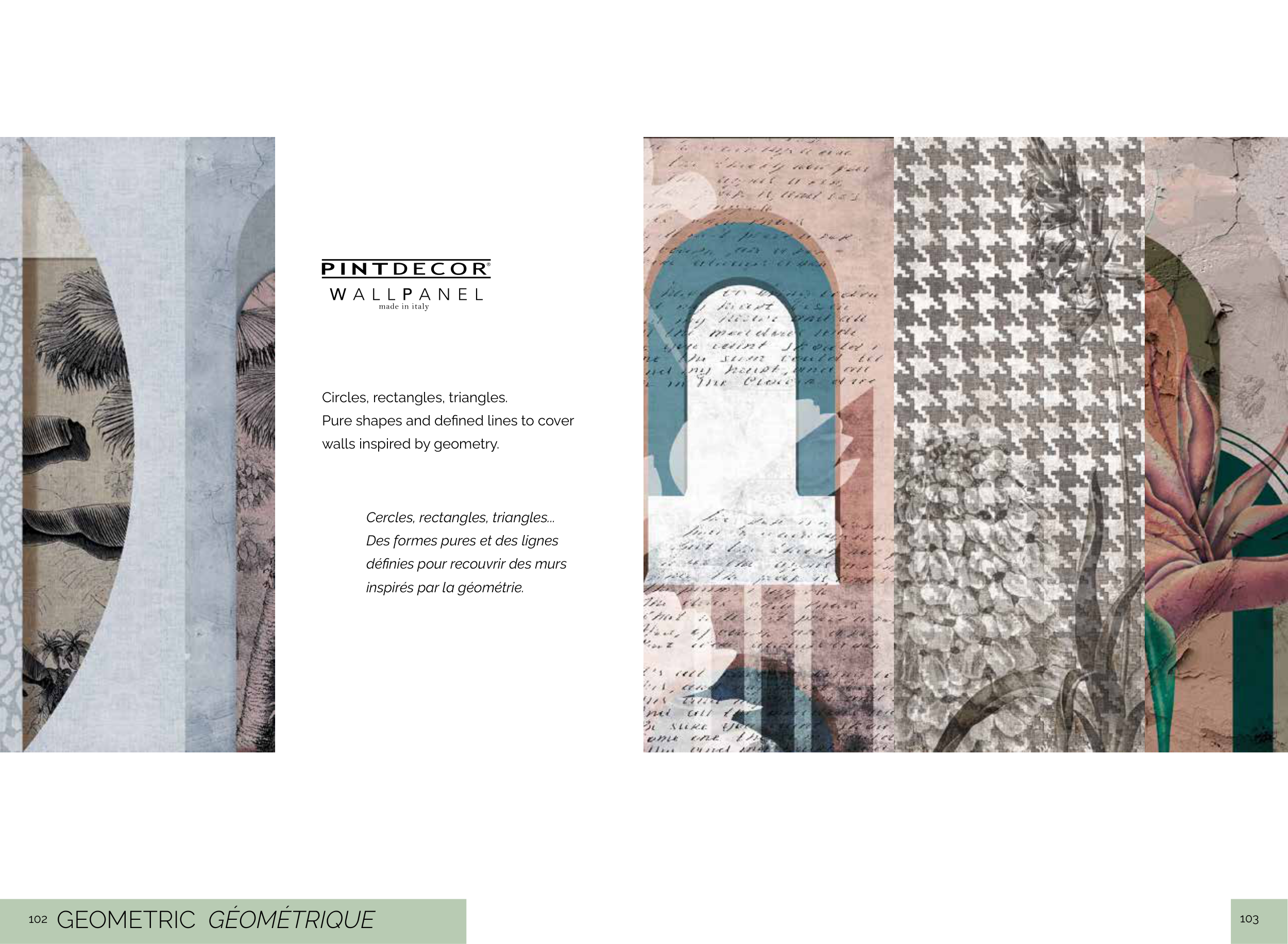 102 103 GEOMETRIC GÉOMÉTRIQUE Circles, rectangles, triangles. Pure shapes and defined lines to cover walls inspired by geometry. Cercles, rectangles, triangles... Des formes pures et des lignes définies pour recouvrir des murs inspirés par la géométrie.