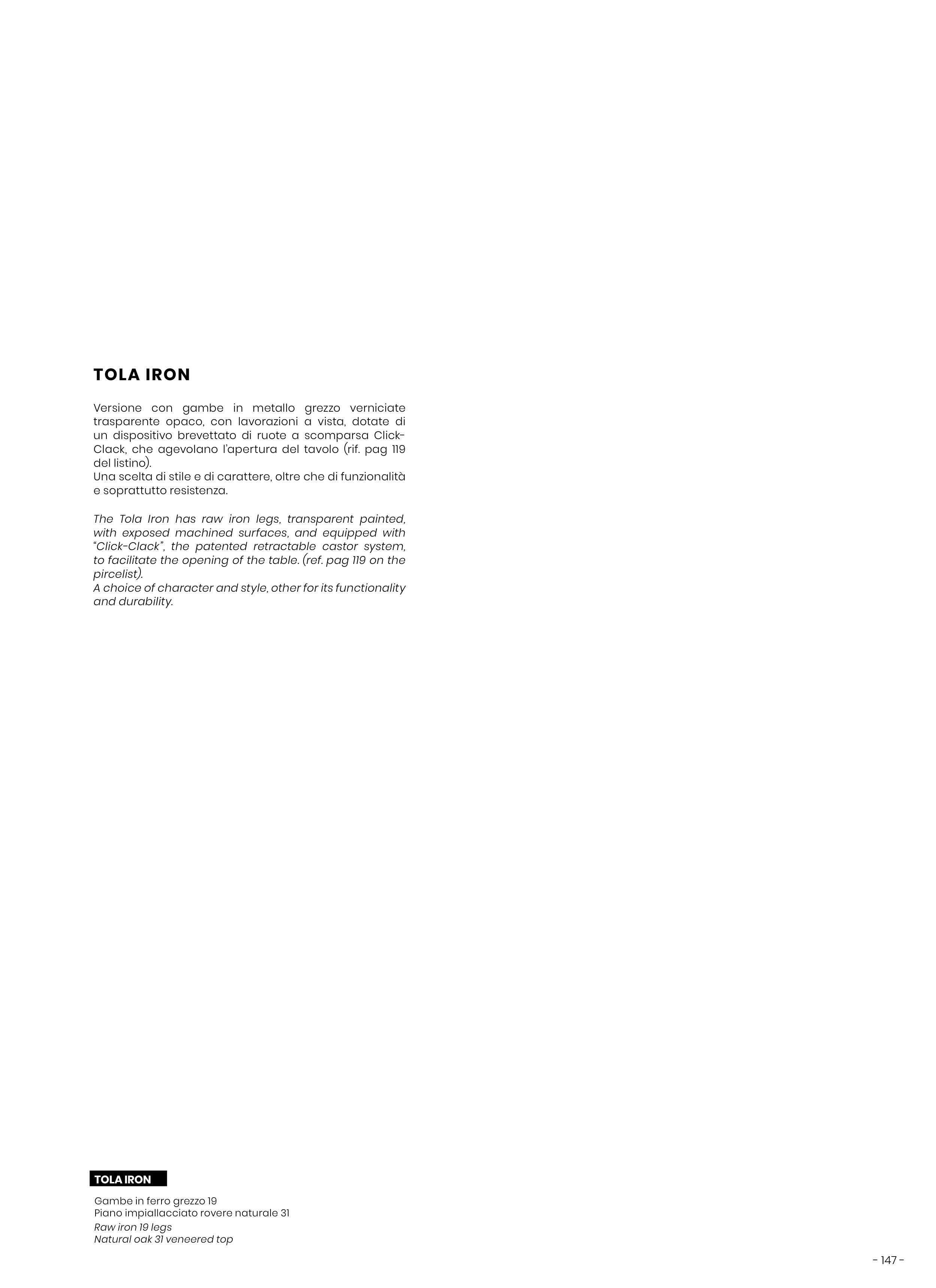 The Tola Iron has raw iron legs, transparent painted,
