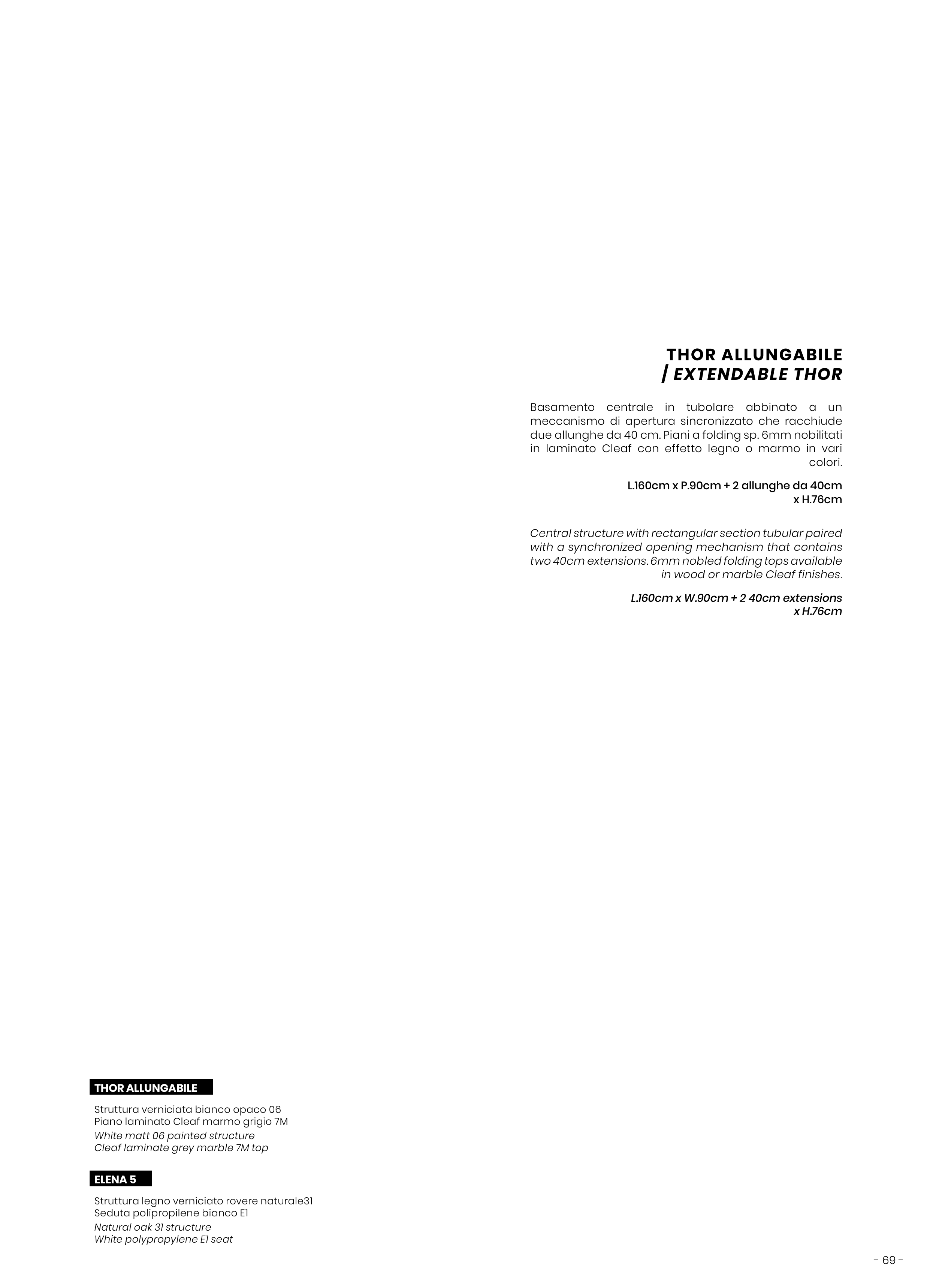 due allunghe da 40 cm. Piani a folding sp. 6mm nobilitati