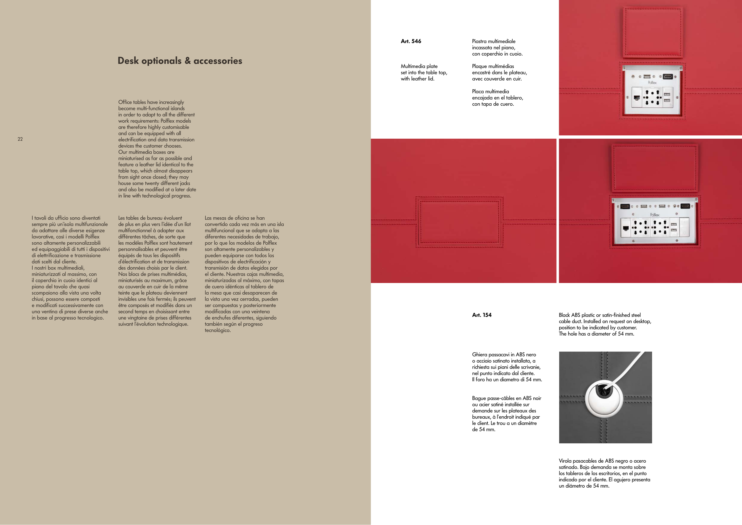 cable duct. Installed on request on desktop,