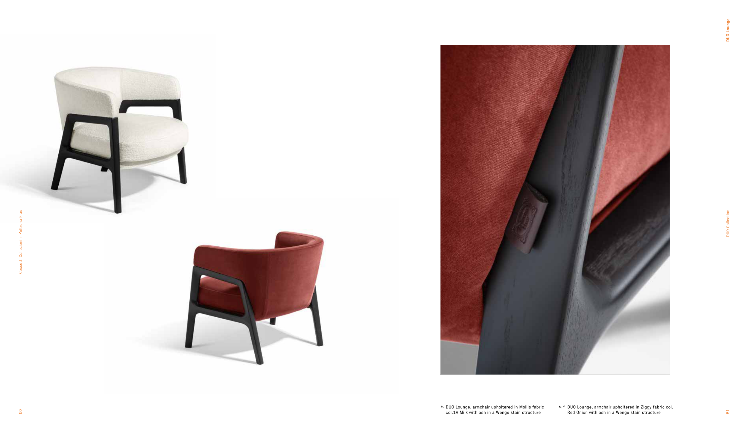 ↖↑ DUO Lounge, armchair upholtered in Ziggy fabric col.