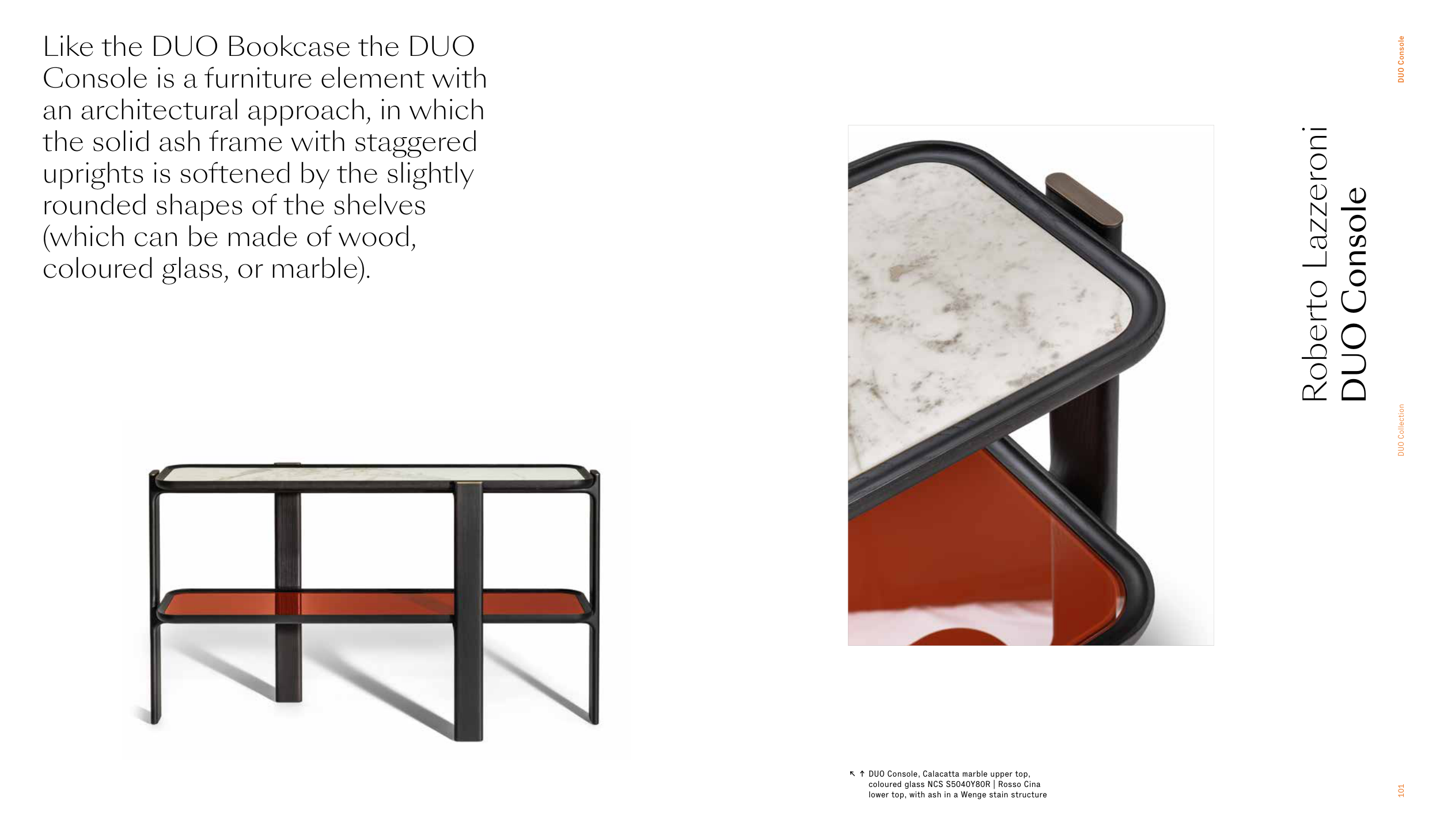 ↖ ↑ DUO Console, Calacatta marble upper top,