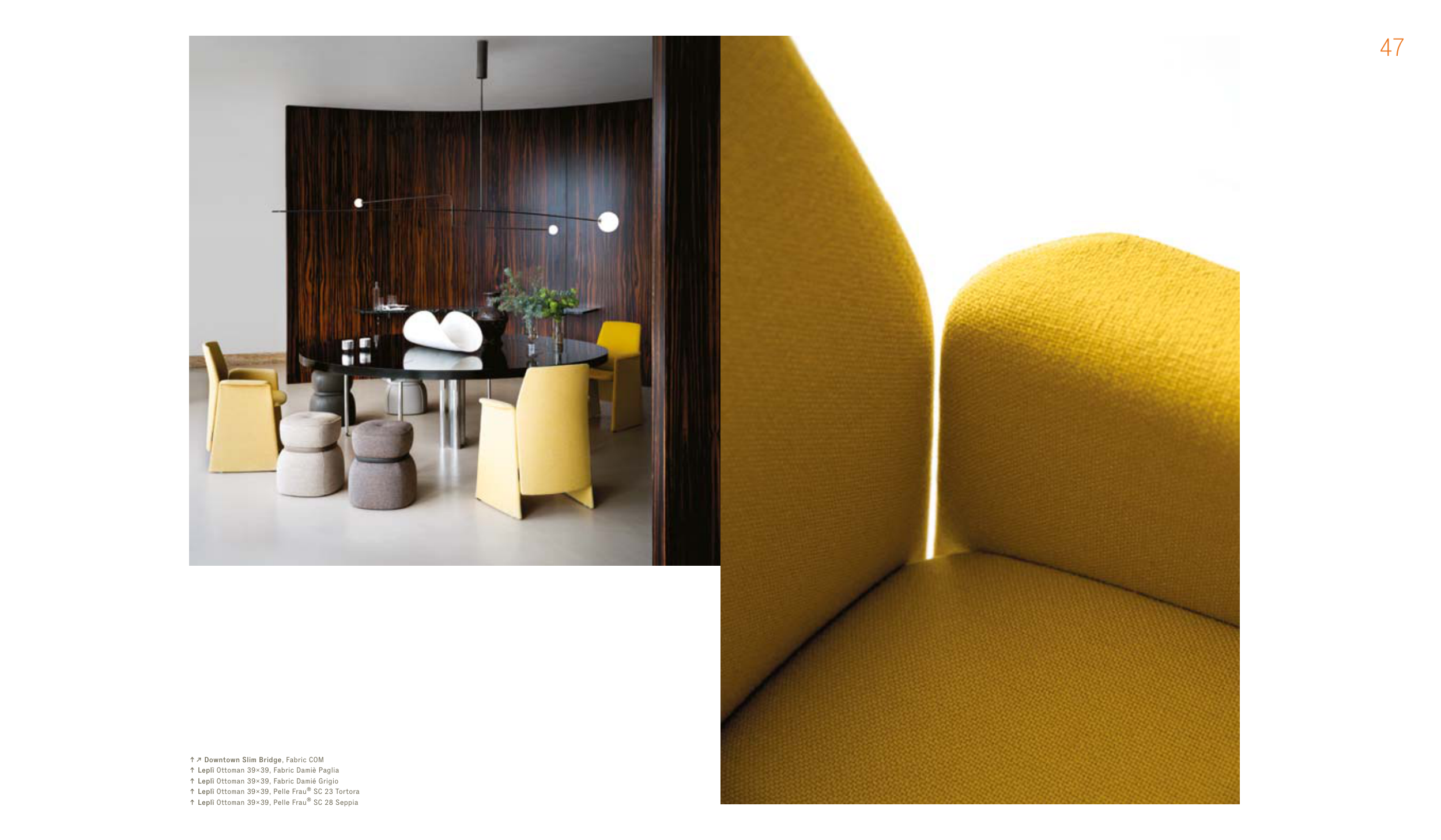 ↑ Leplì Ottoman 39×39, Fabric Damiè Paglia