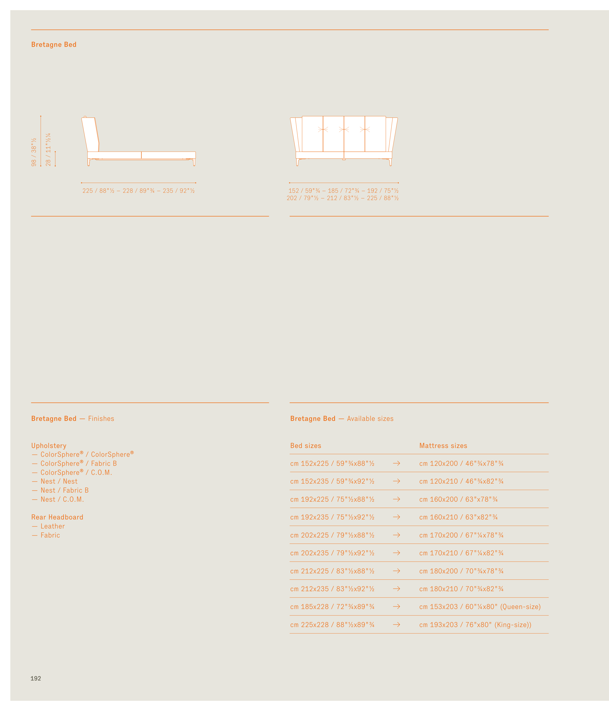 Bretagne Bed — Available sizes