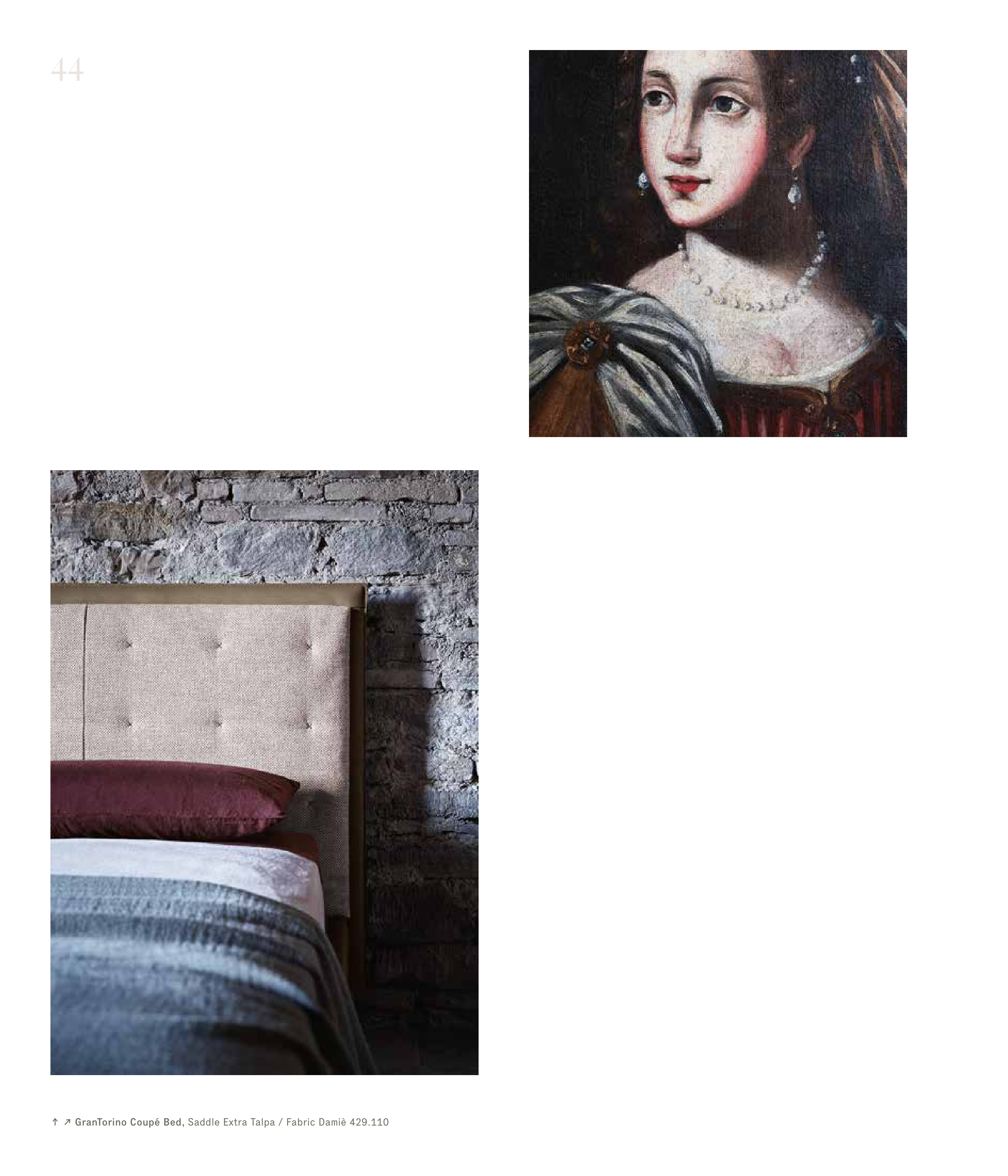 ↑ ↗ GranTorino Coupé Bed, Saddle Extra Talpa / Fabric Damiè 429.110