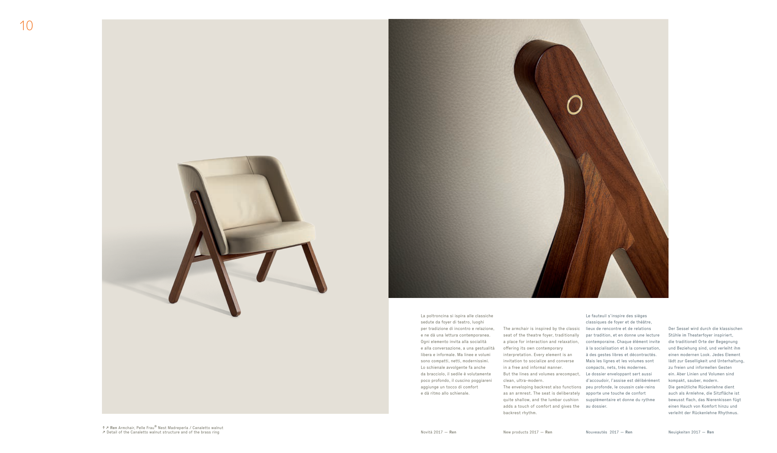 ↑↗ Ren Armchair, Pelle Frau® Nest Madreperla / Canaletto walnut