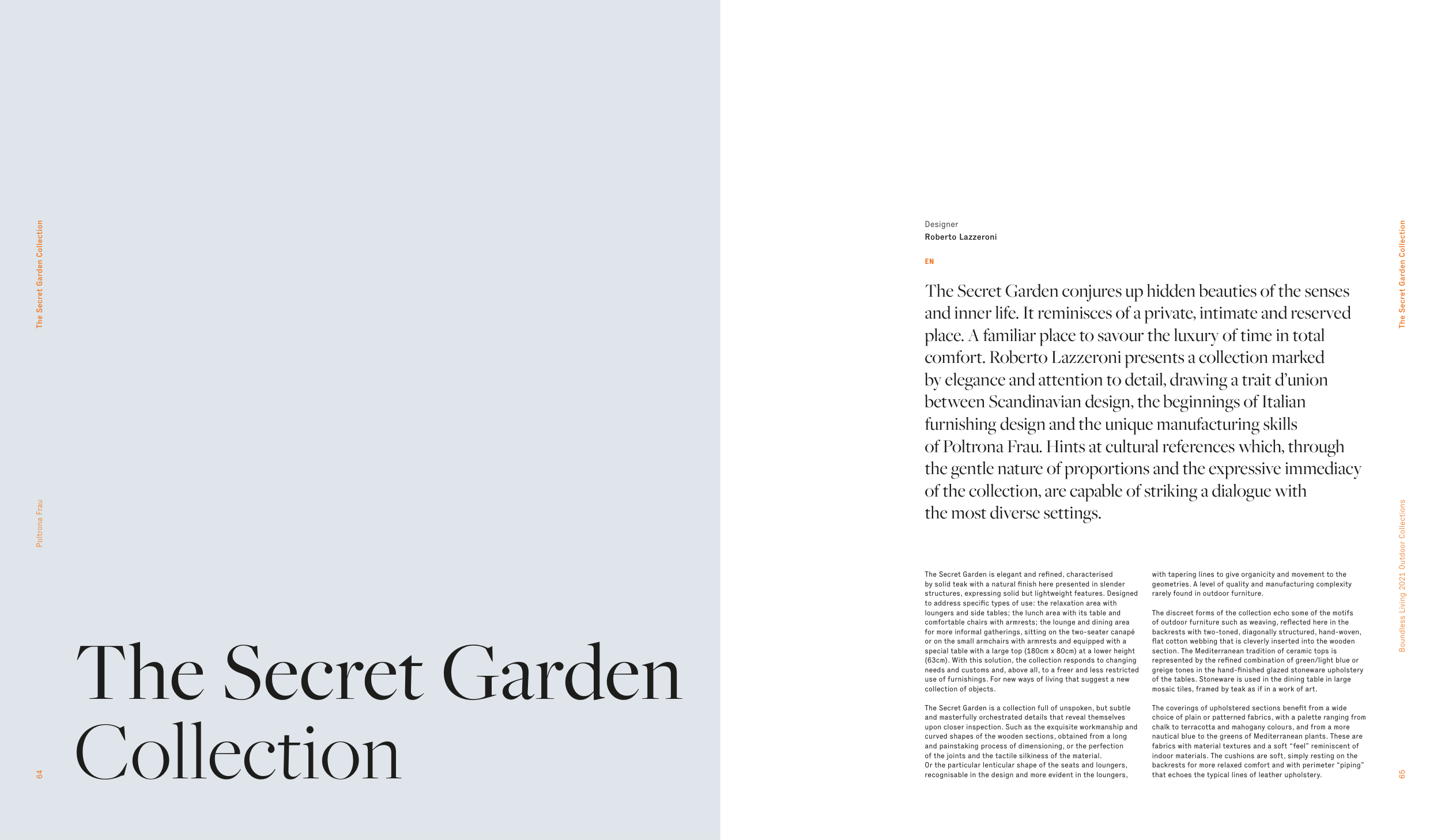 by solid teak with a natural fi nish here presented in slender