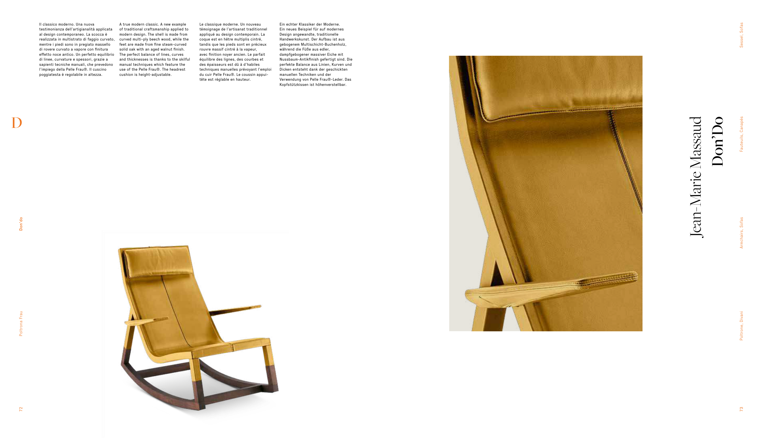 du cuir Pelle Frau®. Le coussin appui-