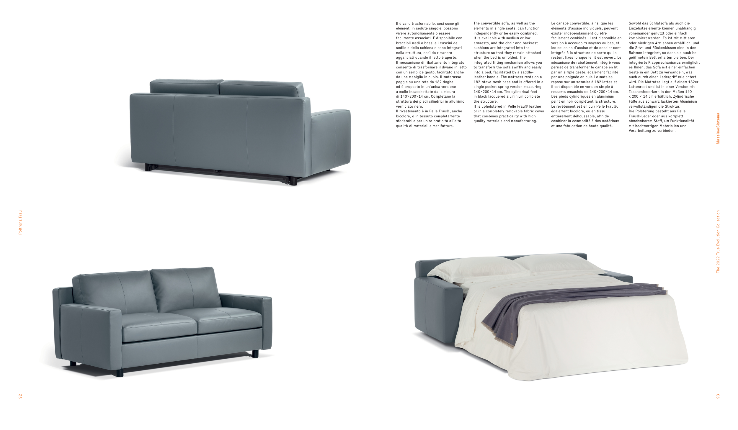 It is upholstered in Pelle Frau® leather
