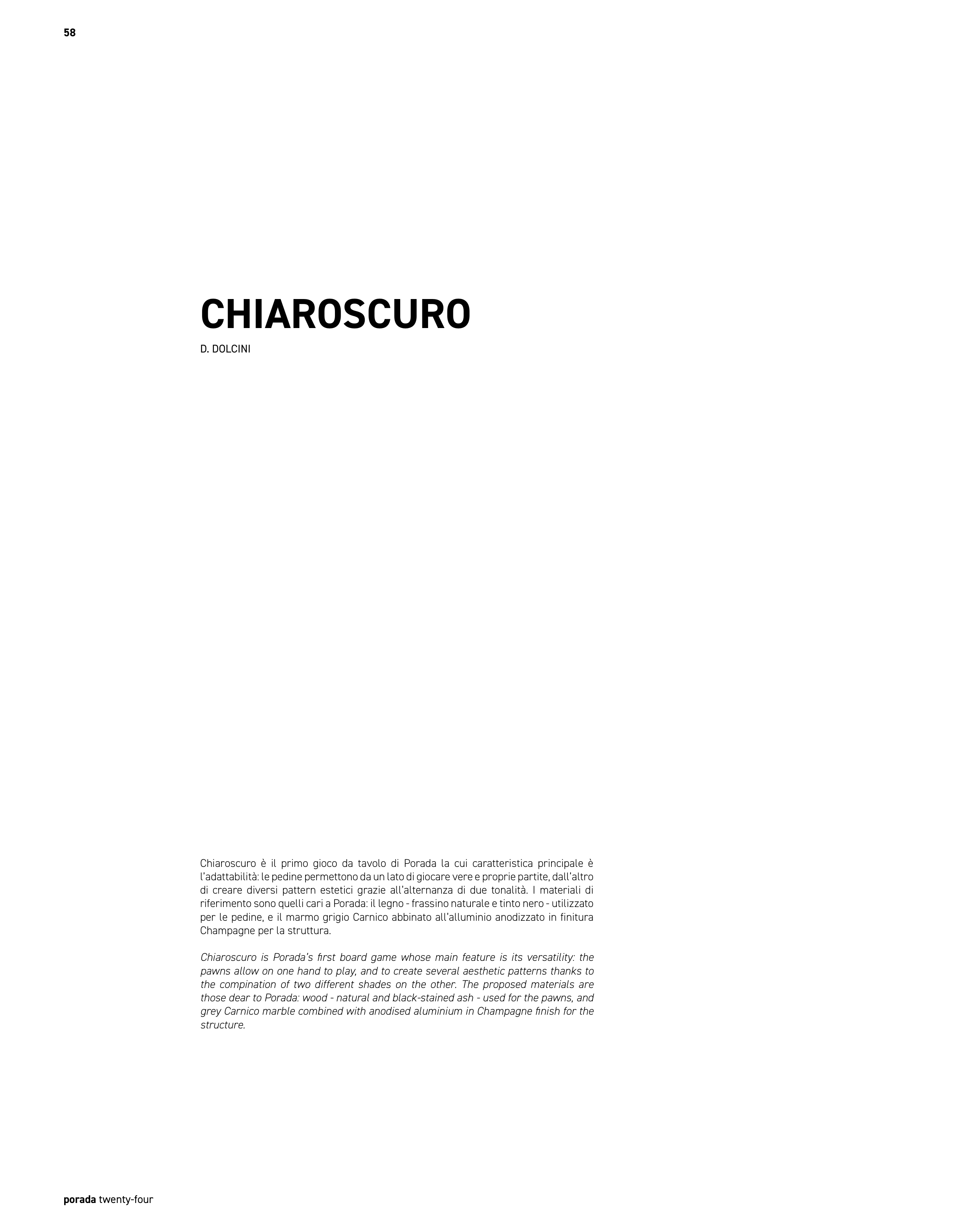 Chiaroscuro è il primo gioco da tavolo di Porada la cui caratteristica principale è
