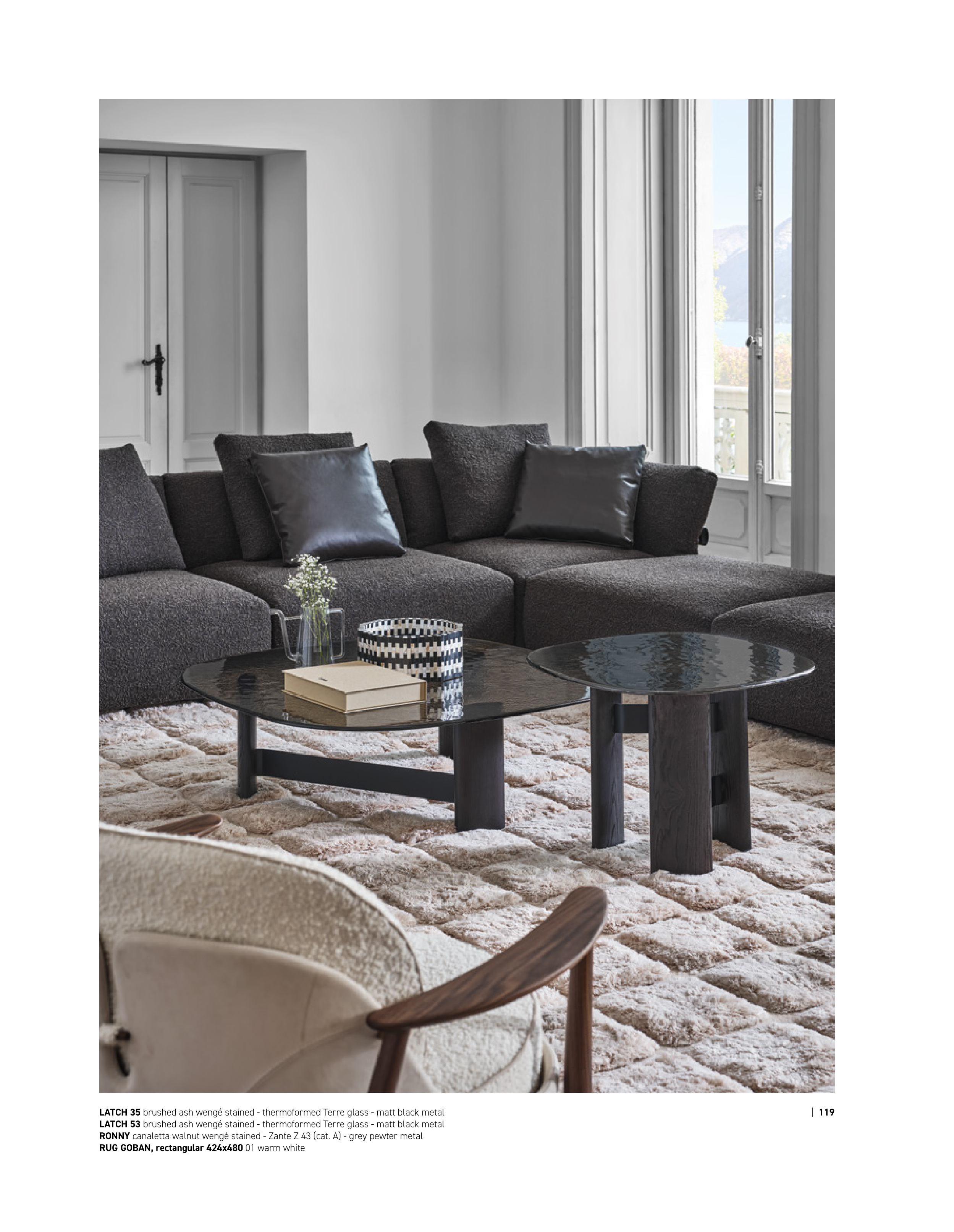 LATCH 35 brushed ash wengé stained - thermoformed Terre glass - matt black metal