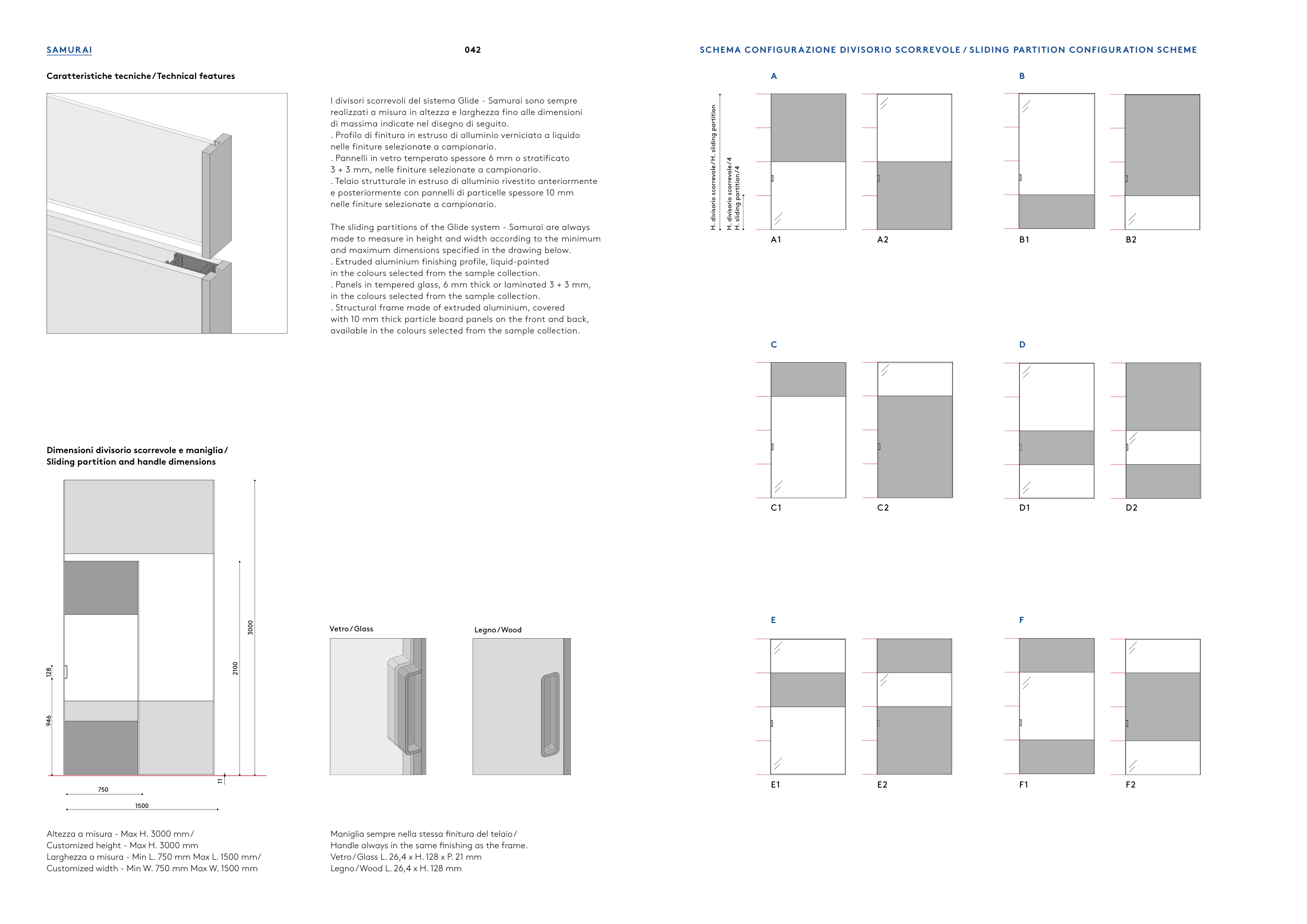 SCHEMA CONFIGURAZIONE DIVISORIO SCORREVOLE / SLIDING PARTITION CONFIGURATION SCHEME
