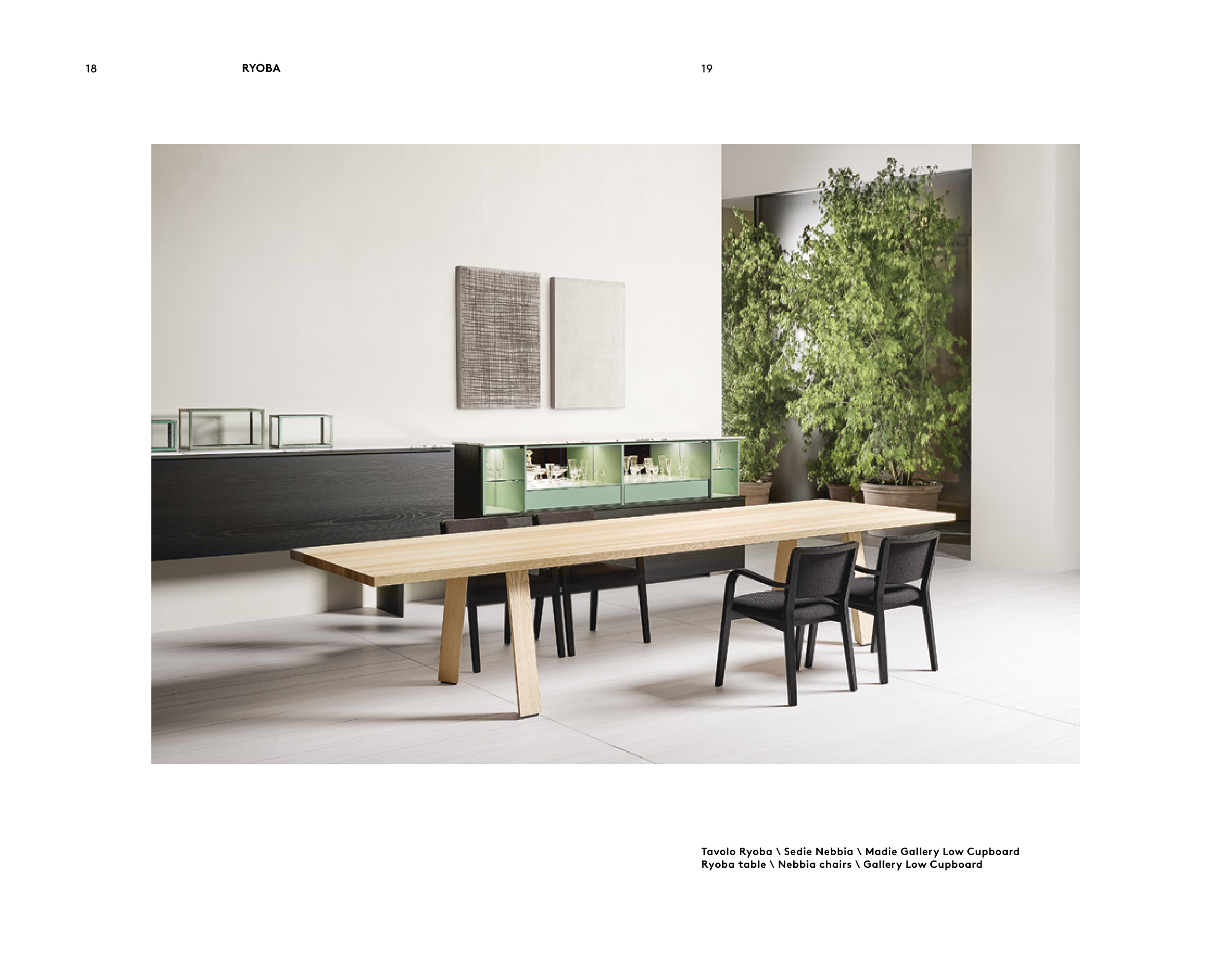 Ryoba table \ Nebbia chairs \ Gallery Low Cupboard