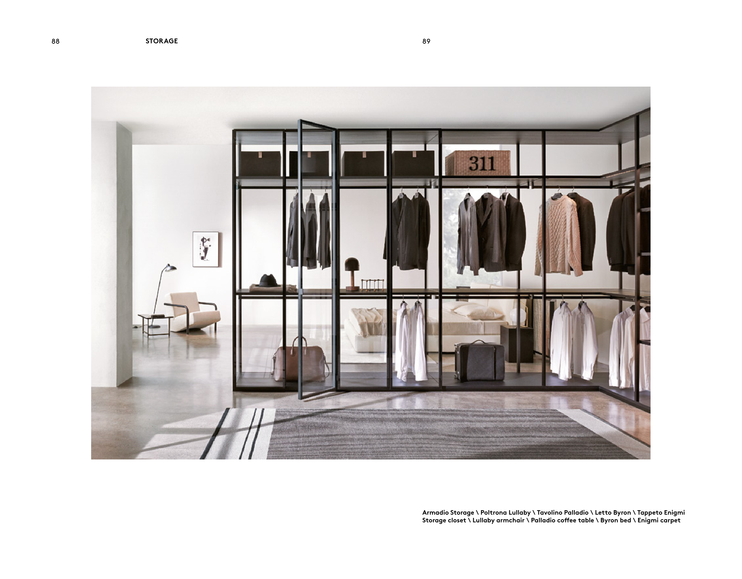 Storage closet \ Lullaby armchair \ Palladio coffee table \ Byron bed \ Enigmi carpet