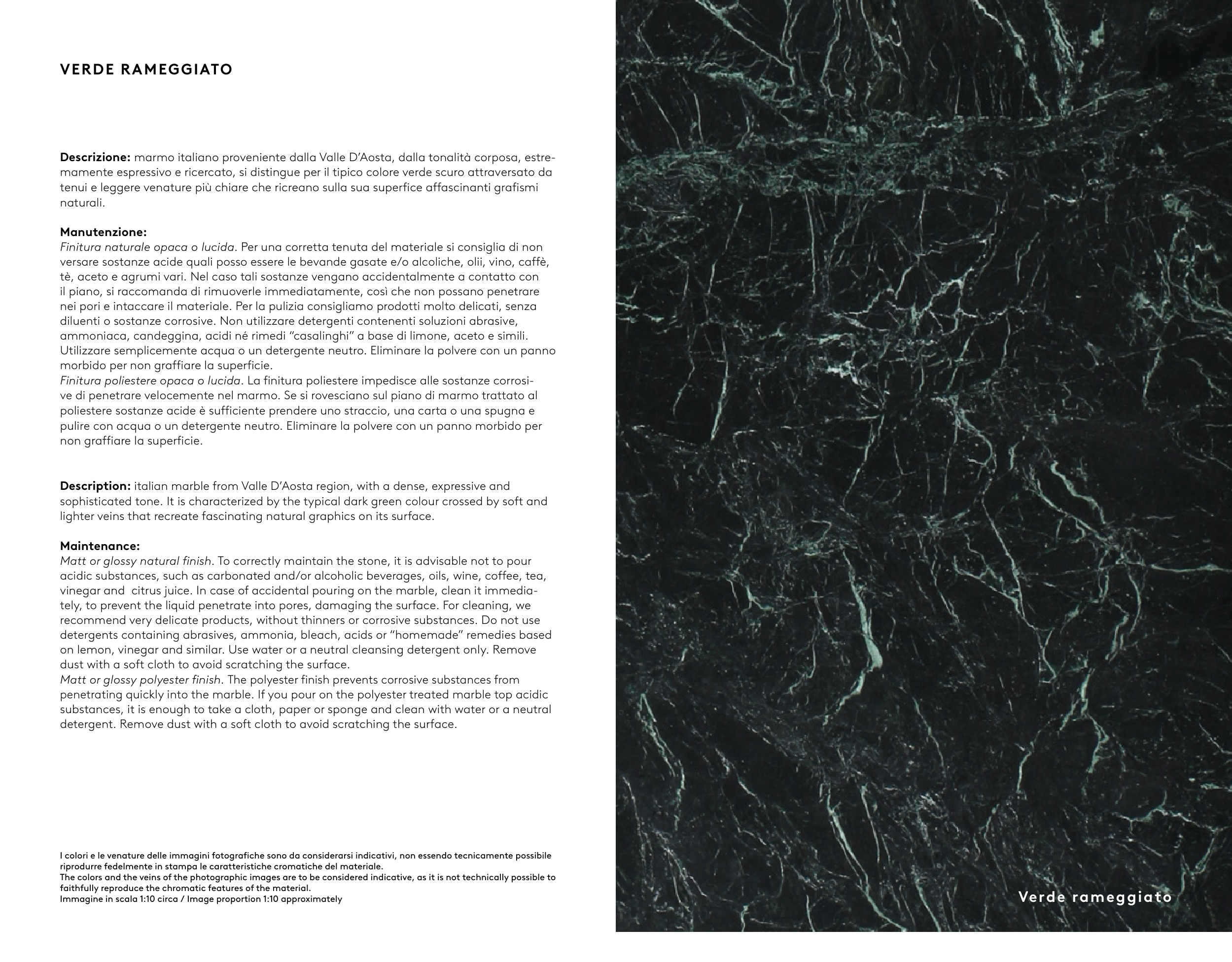 The colors and the veins of the photographic images are to be considered indicative, as it is not technically possible to