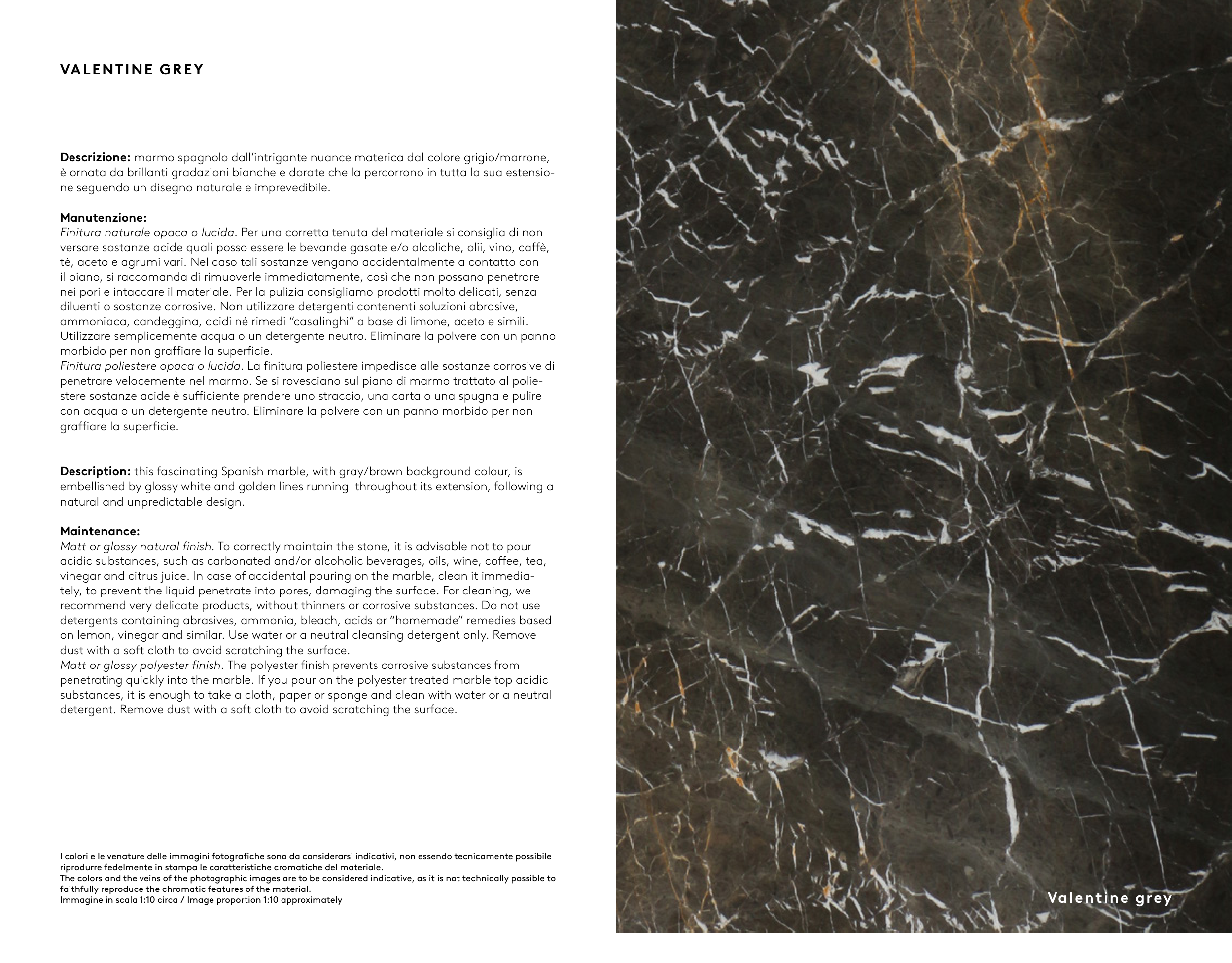 The colors and the veins of the photographic images are to be considered indicative, as it is not technically possible to