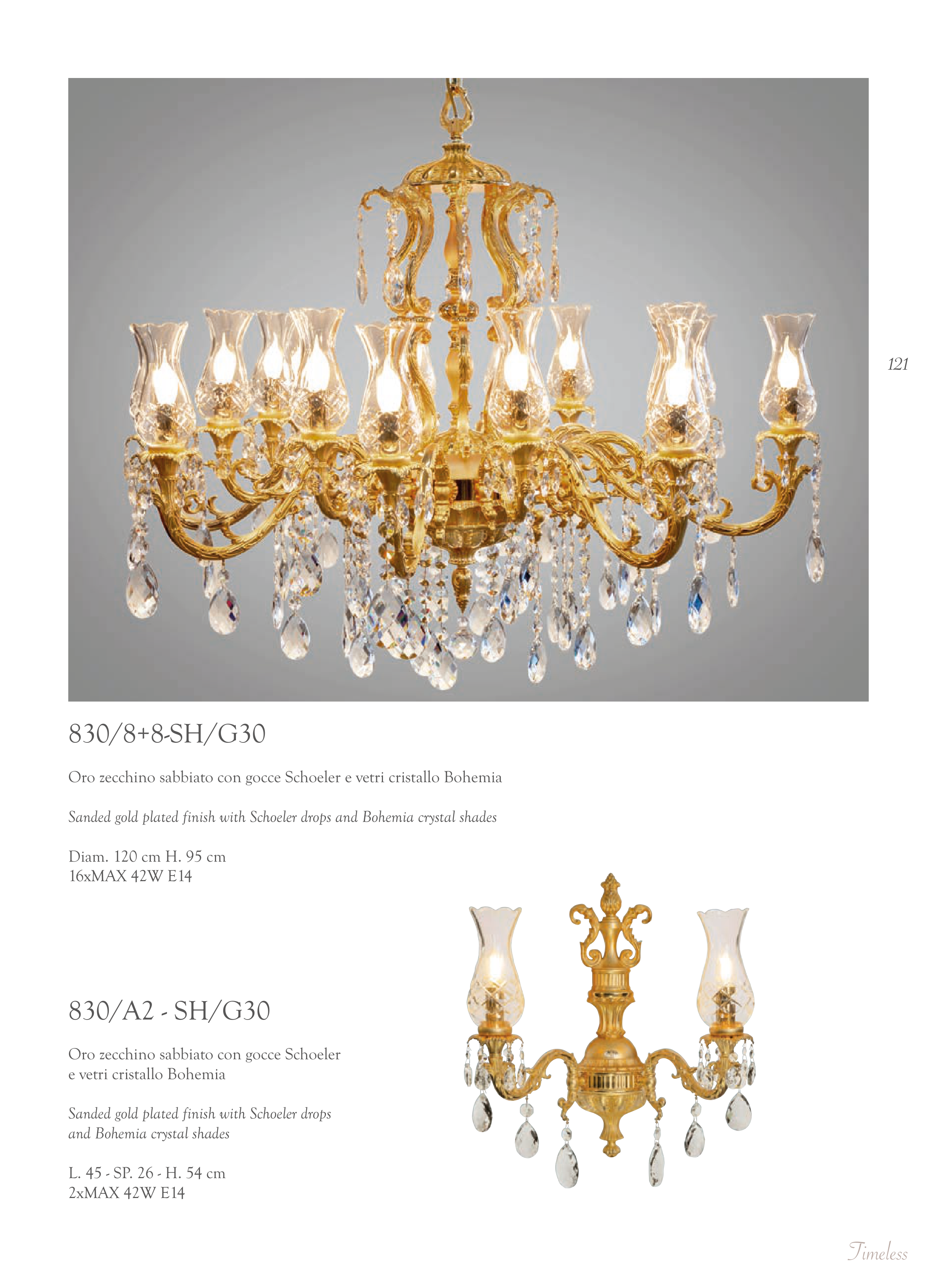 Sanded gold plated finish with Schoeler drops and Bohemia crystal shades