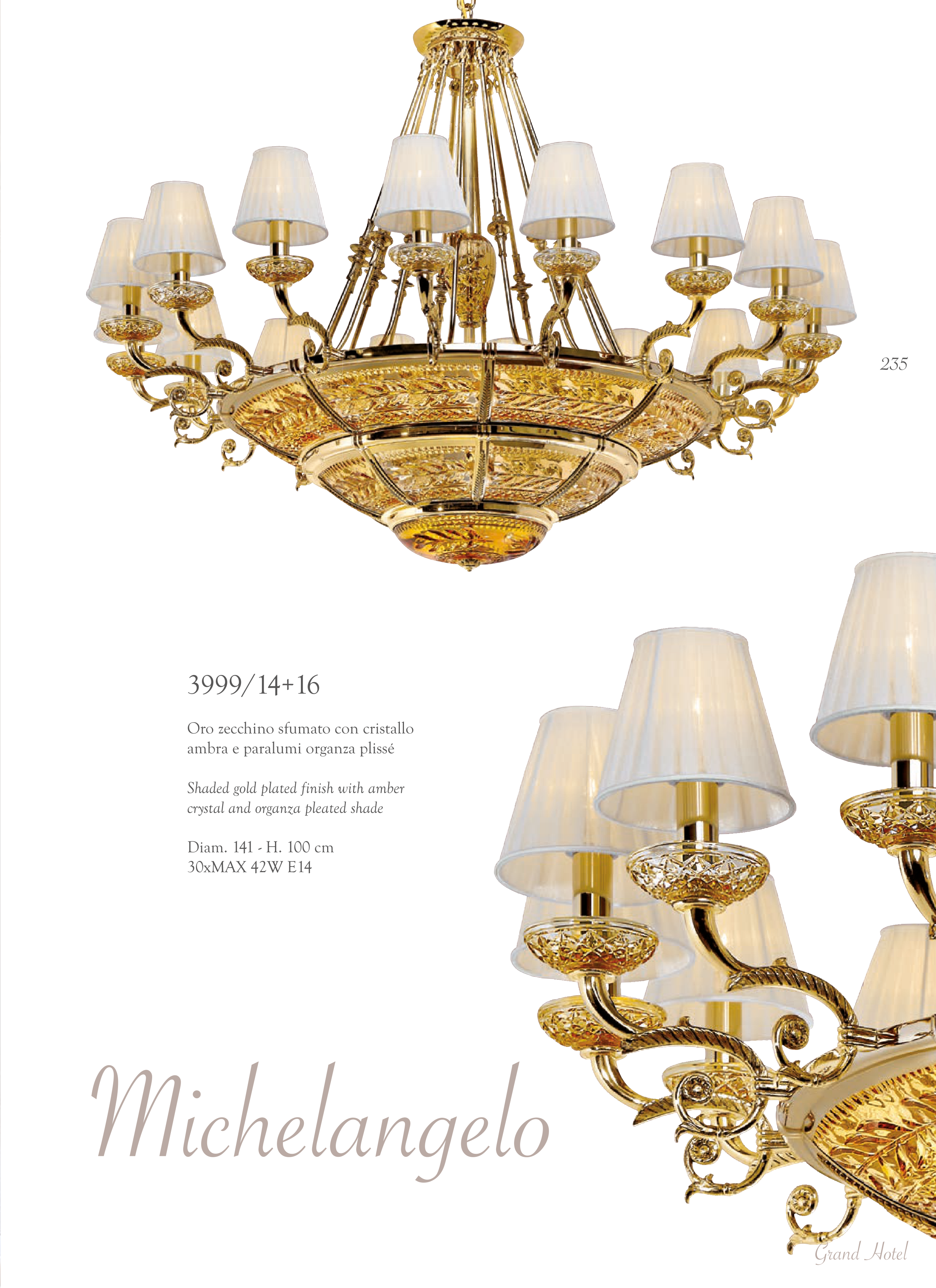 Shaded gold plated finish with amber