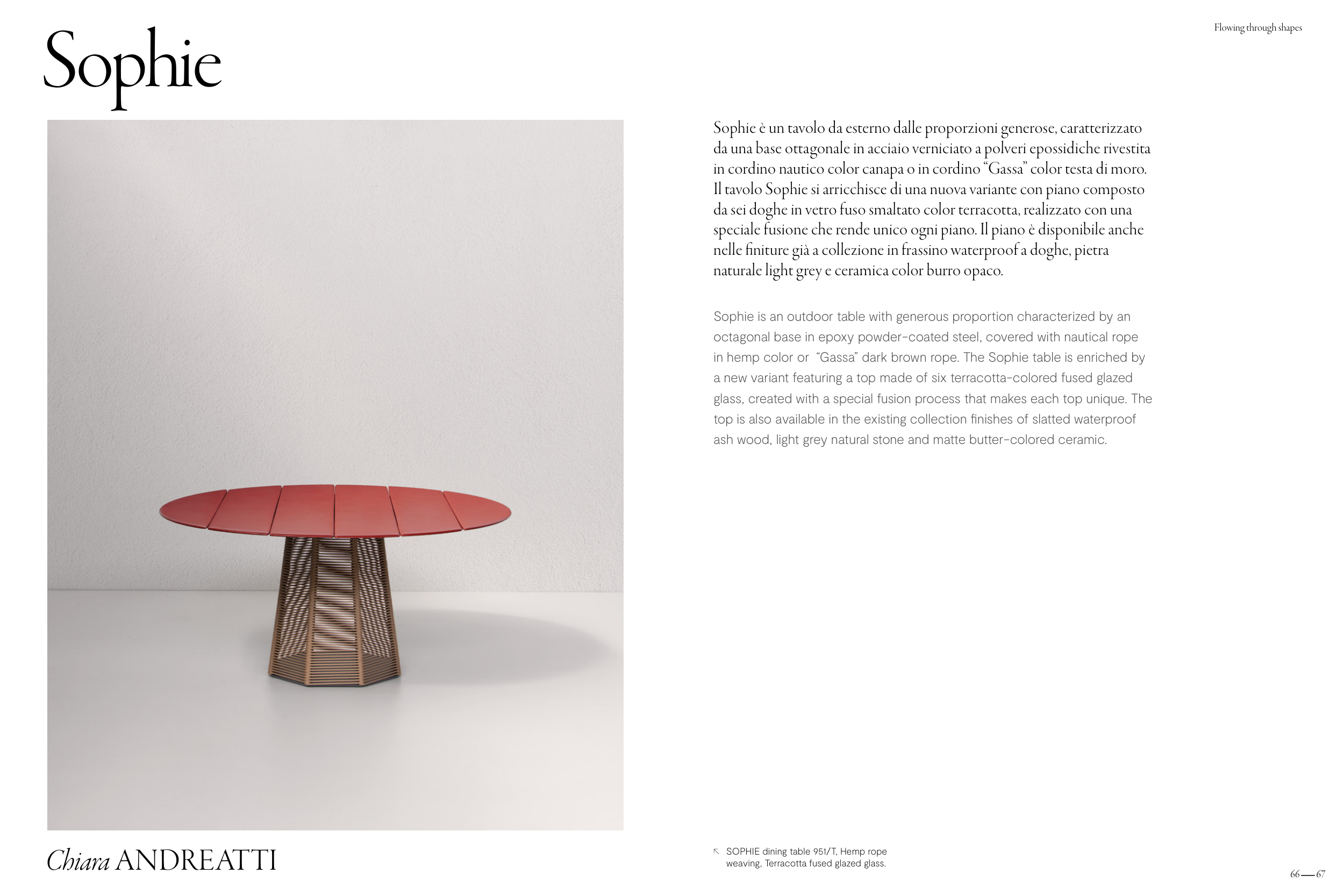 in hemp color or “Gassa” dark brown rope. The Sophie table is enriched by