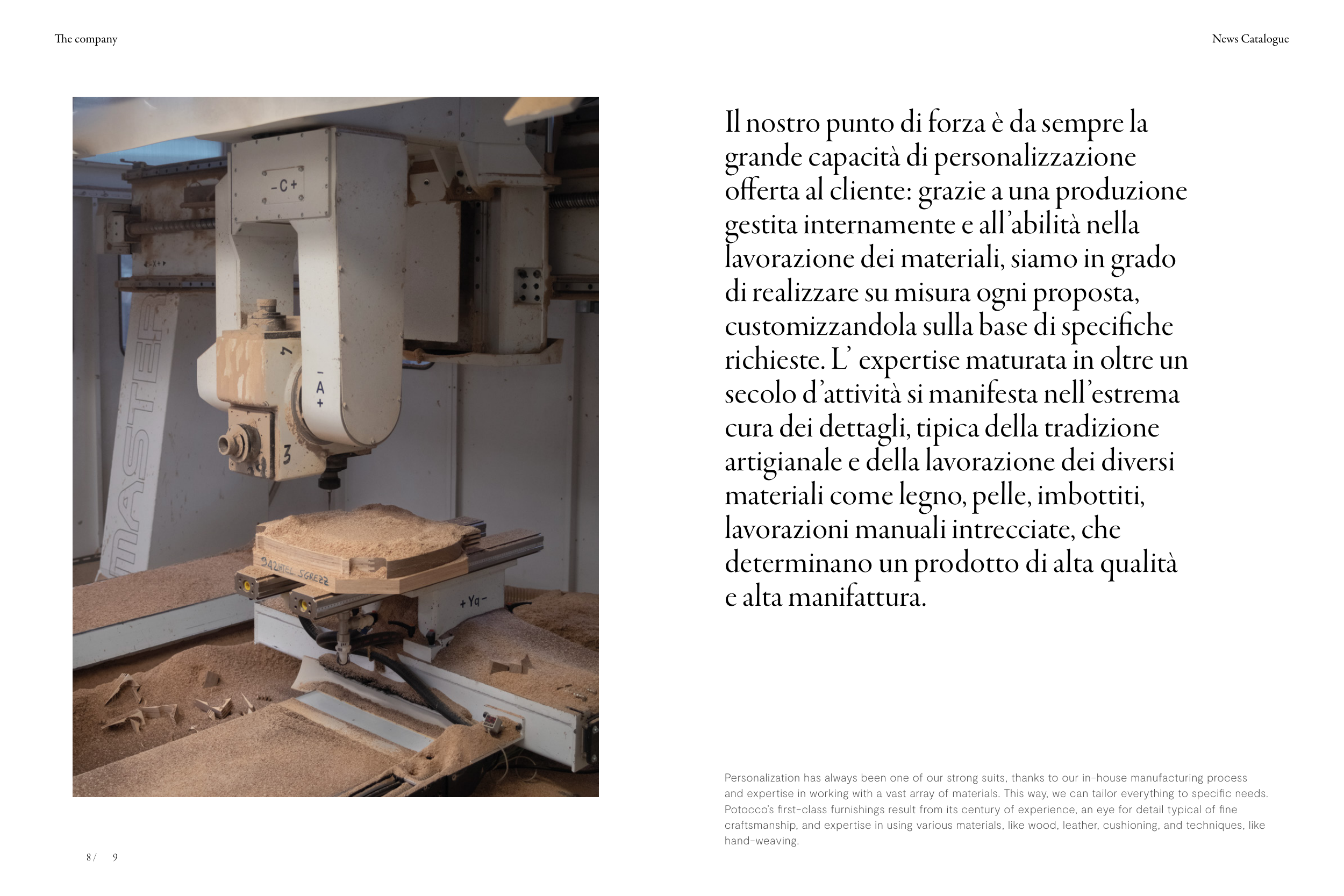 Potocco’s first-class furnishings result from its century of experience, an eye for detail typical of fine