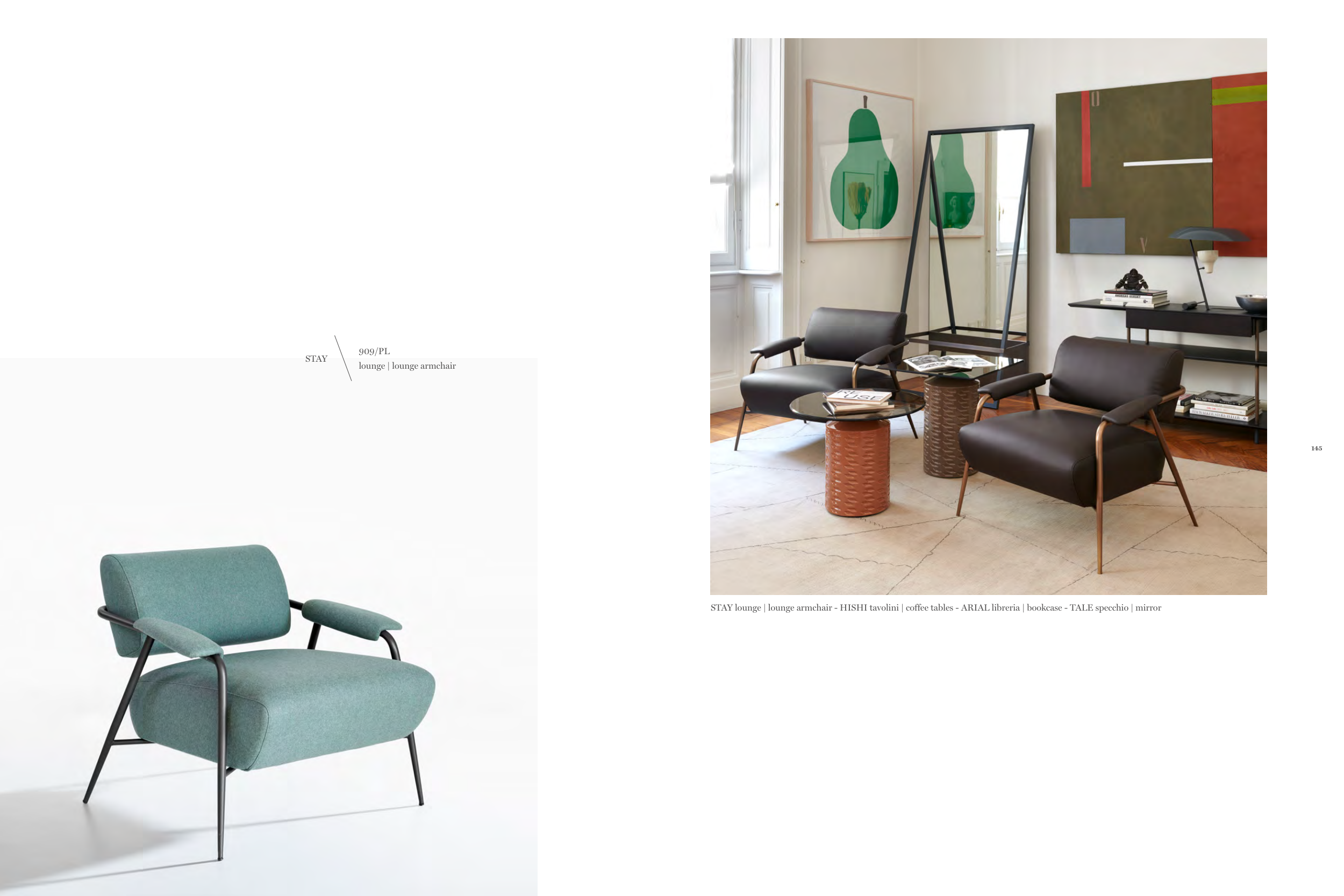 STAY lounge | lounge armchair - HISHI tavolini | coffee tables - ARIAL libreria | bookcase - TALE specchio | mirror
