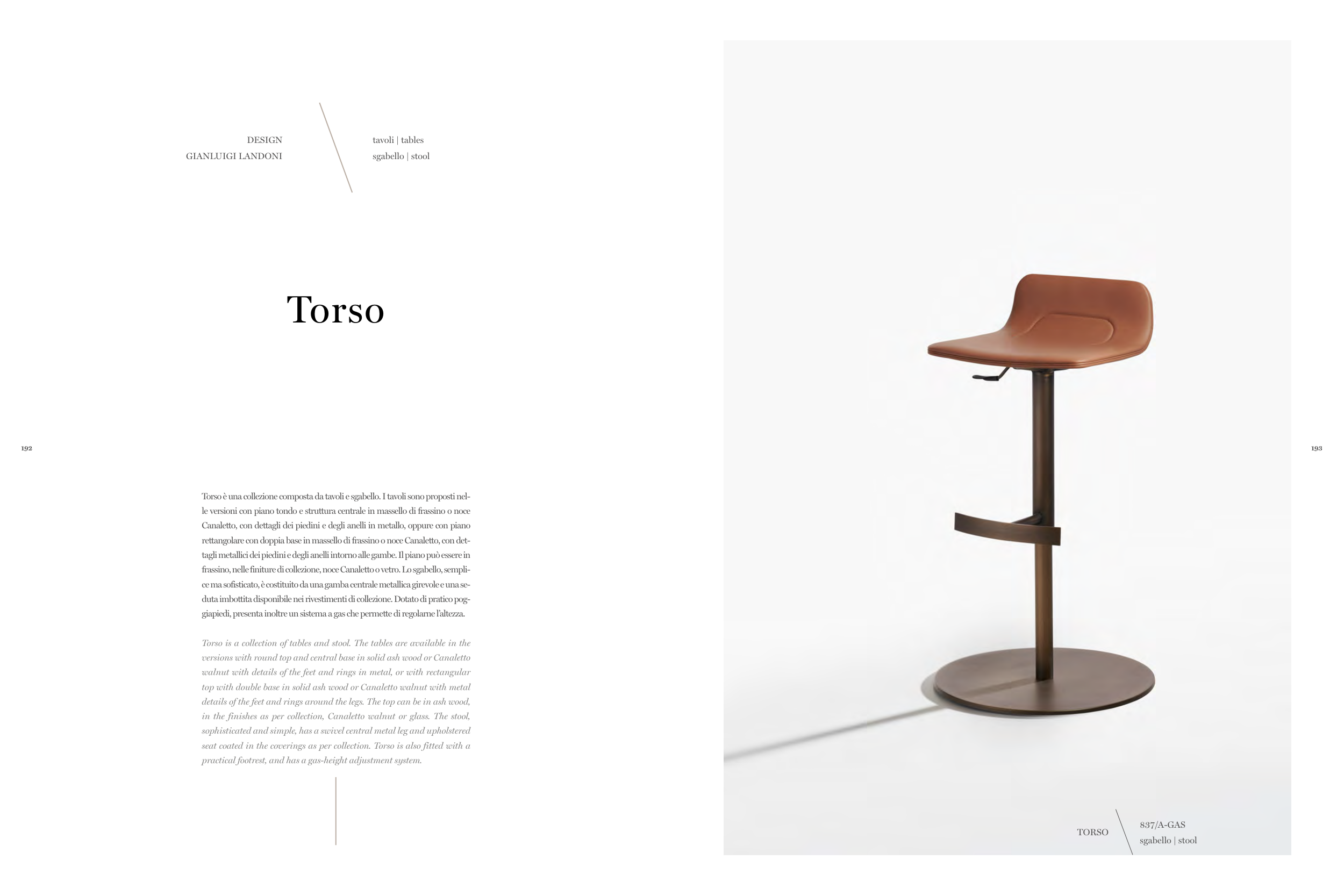 Torso è una collezione composta da tavoli e sgabello. I tavoli sono proposti nel-