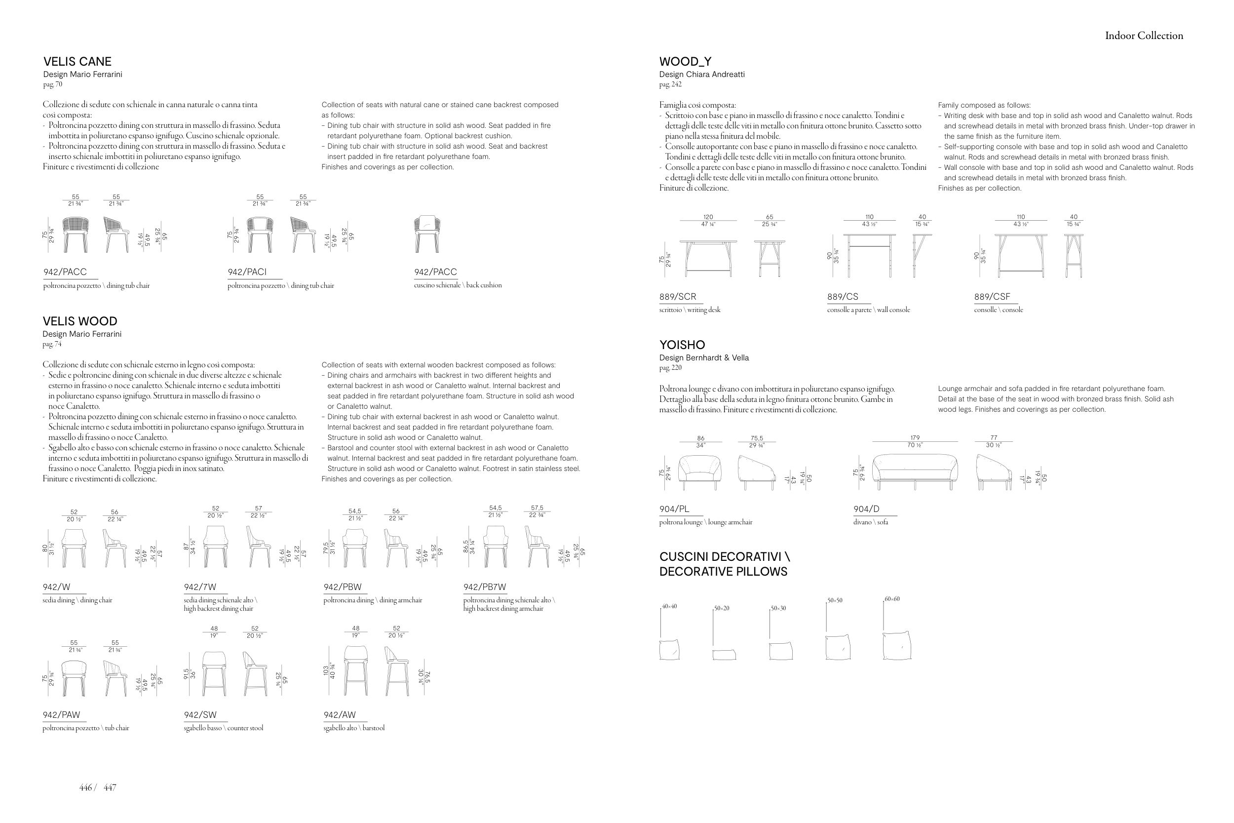 wood legs. Finishes and coverings as per collection.