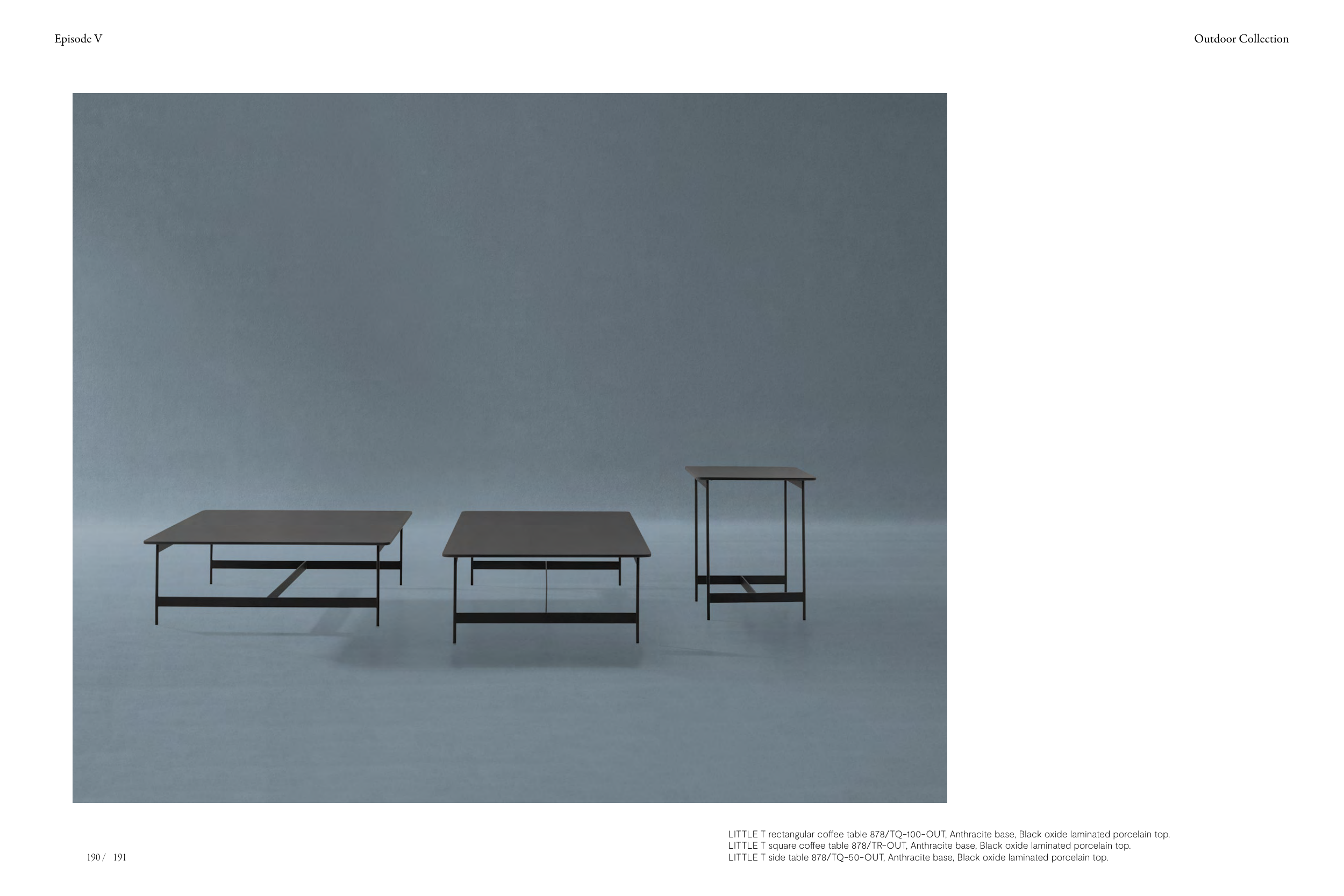 LITTLE T rectangular coffee table 878/TQ-100-OUT, Anthracite base, Black oxide laminated porcelain top.