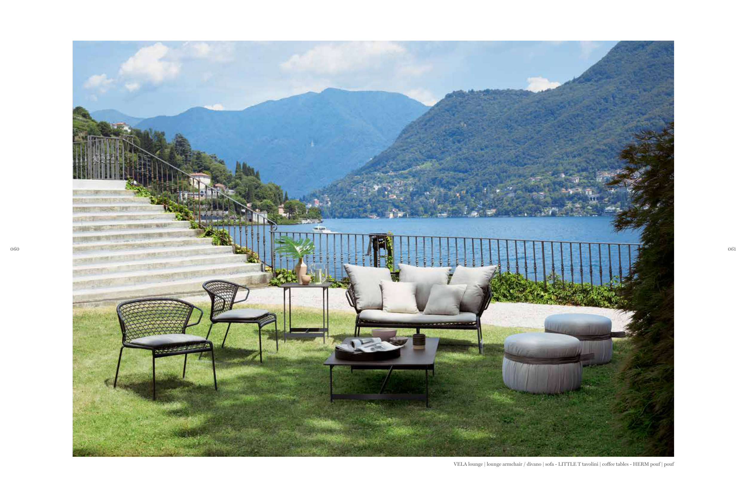 VELA lounge | lounge armchair / divano | sofa - LITTLE T tavolini | coffee tables - HERM pouf | pouf