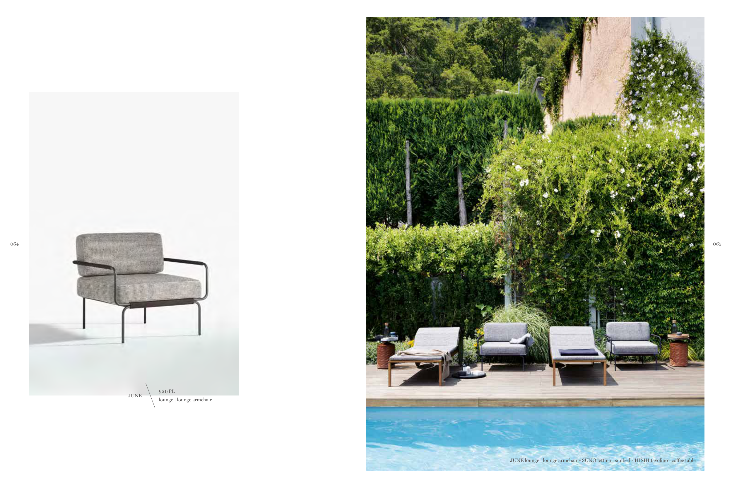 JUNE lounge | lounge armchair - SUNO lettino | sunbed - HISHI tavolino | coffee table