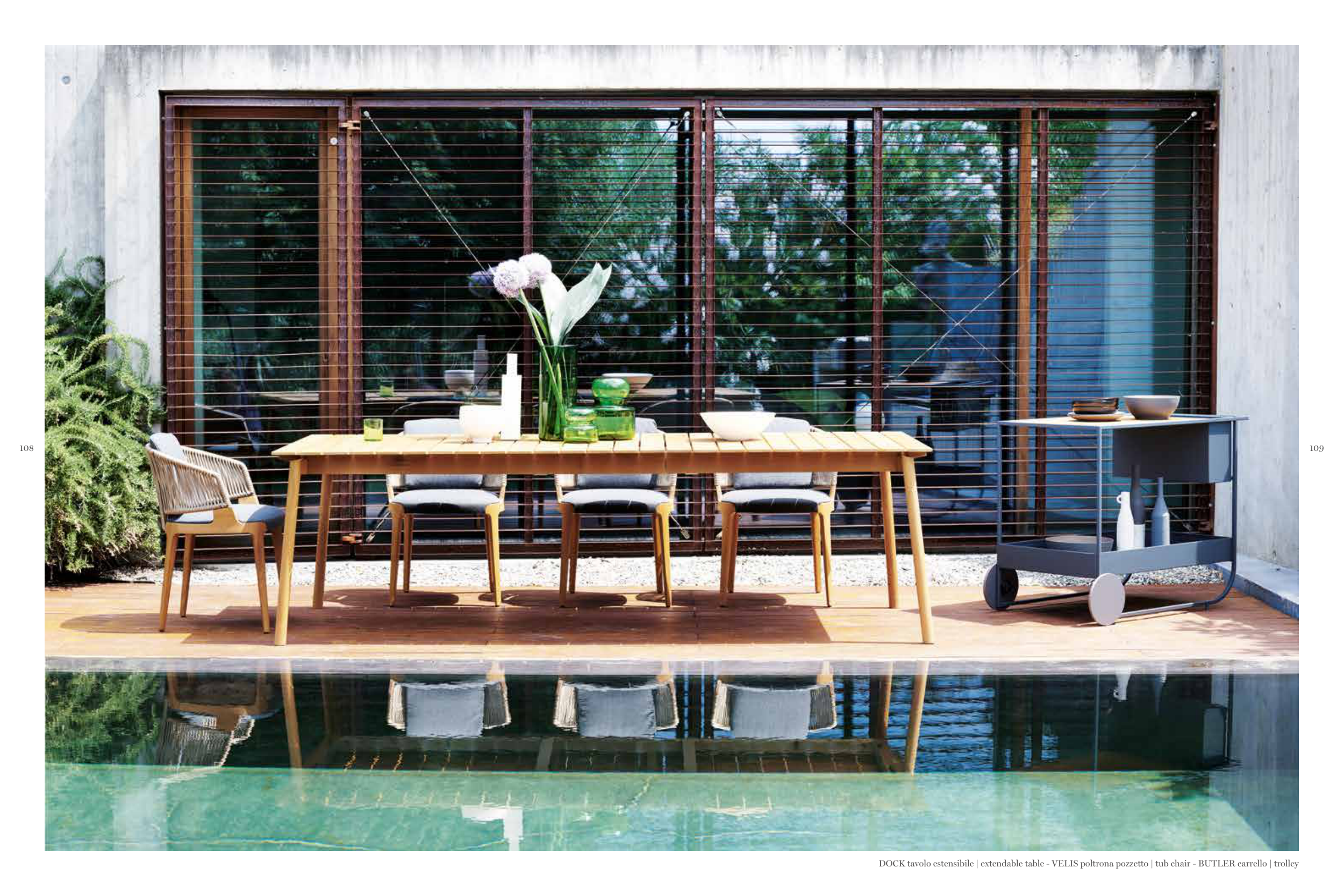 DOCK tavolo estensibile | extendable table - VELIS poltrona pozzetto | tub chair - BUTLER carrello | trolley