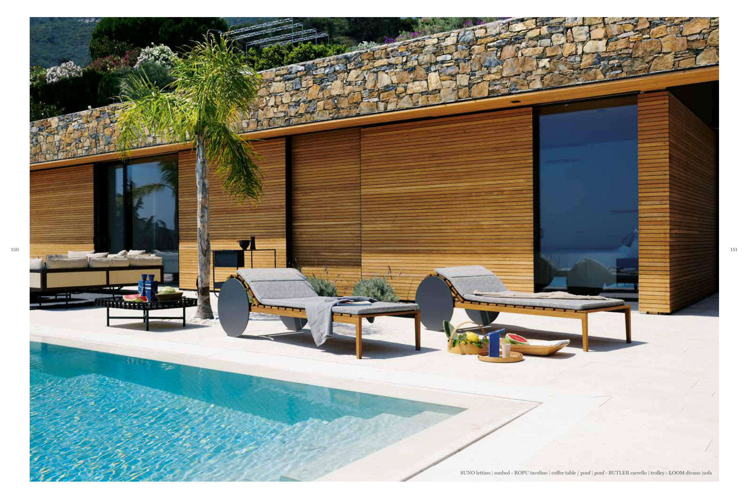 SUNO lettino | sunbed - ROPU tavolino | coffee table / pouf | pouf - BUTLER carrello | trolley - LOOM divano |sofa