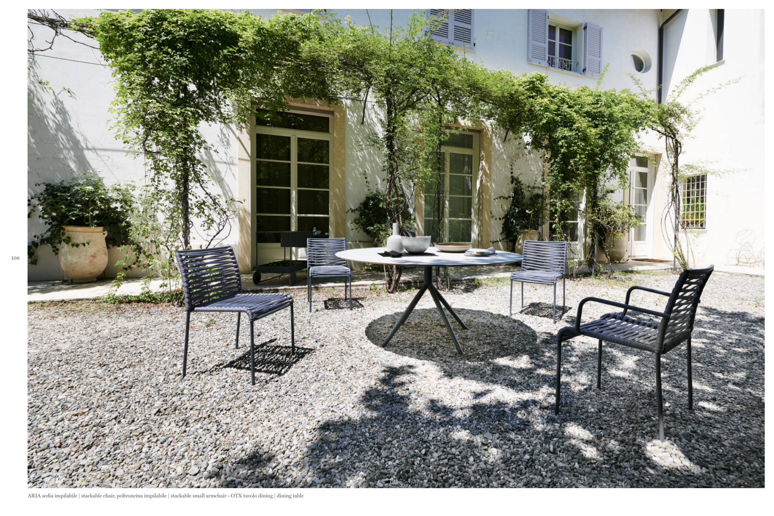 ARIA sedia impilabile | stackable chair, poltroncina impilabile | stackable small armchair - OTX tavolo dining | dining table