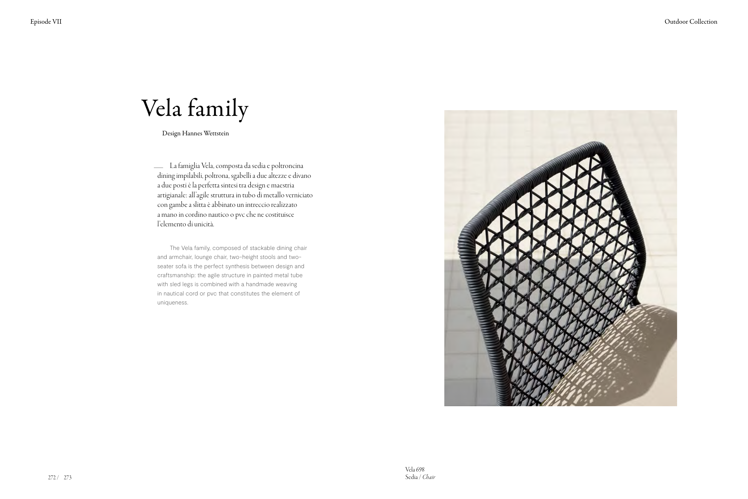 La famiglia Vela, composta da sedia e poltroncina